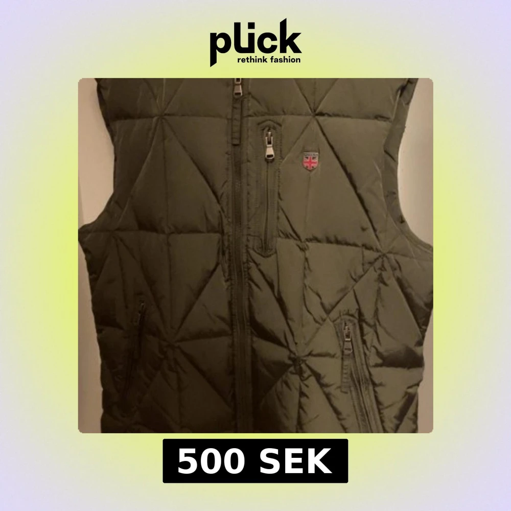 Säljer en olivgrön quiltad dunväst från William Strouch med dragkedja framtill och tre fickor med dragkedja. Västen har ett litet märke på bröstet och är perfekt för lager-på-lager under kyliga dagar.
