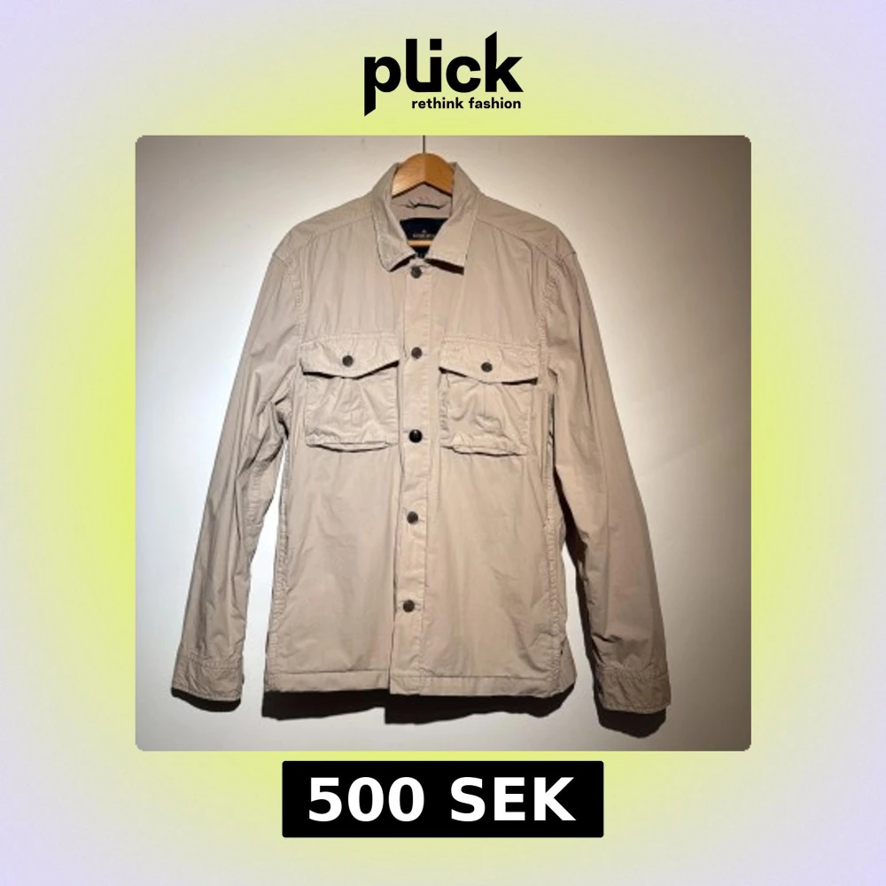 Säljer en stilren beige overshirt med knappar framtill och två bröstfickor. Perfekt för lager-på-lager-stil och passar till många olika outfits. Enkelt och snyggt val för både vardag och mer uppklädda tillfällen.