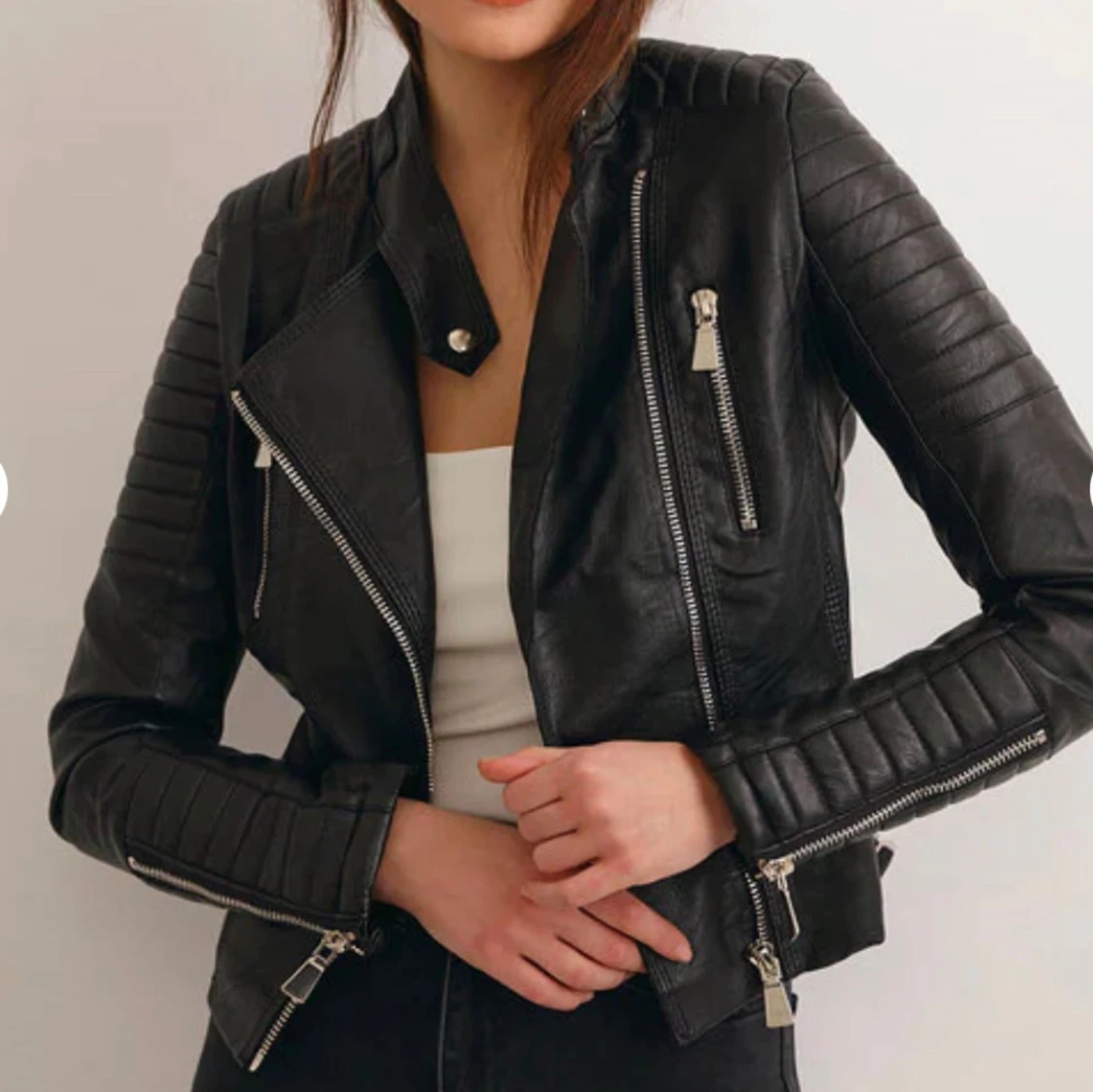 Säljer min skinnjacka från chiquelle i strl 36. Köpt för 799kr men säljer den för 299kr. (Lånad bild)