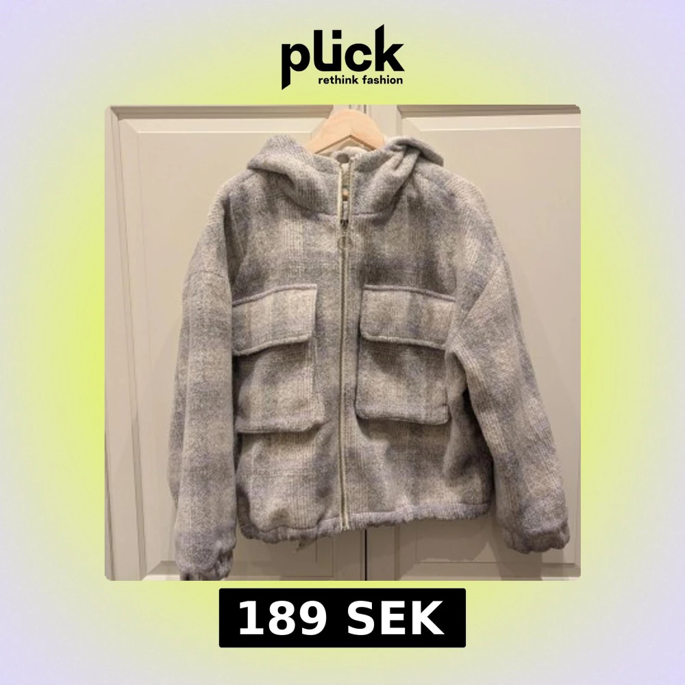 Mysig vinterjacka från Pull&Bear. Jackan är fodrad med en mjuk utsida. Färgen är grå-rutig med hintar av lila. Använd endast ett fåtal gånger. Normal i storlek.