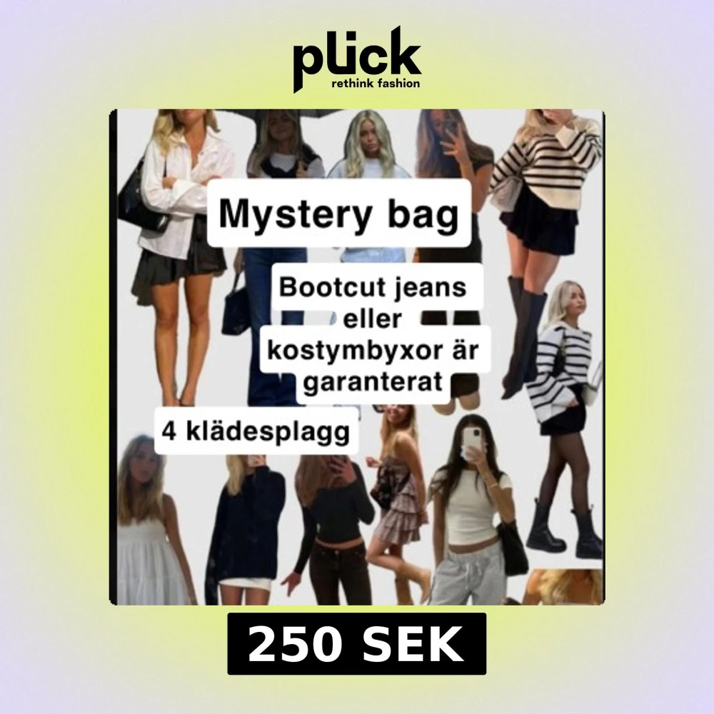 En mysteybag med 4 plagg (ett par bootcut jeans eller kostymbyxor är garanterat).
