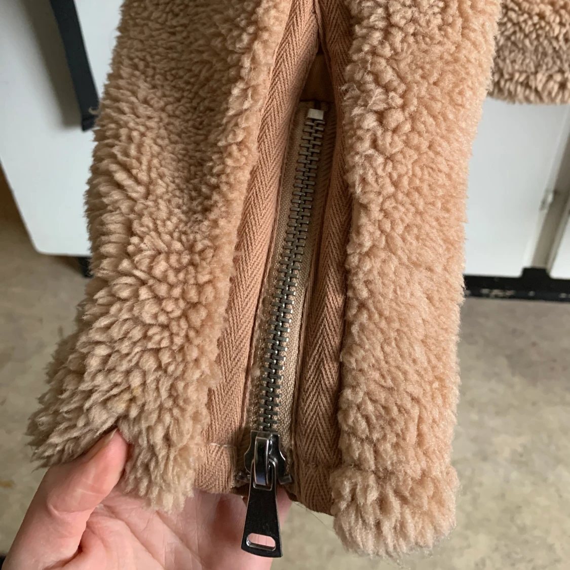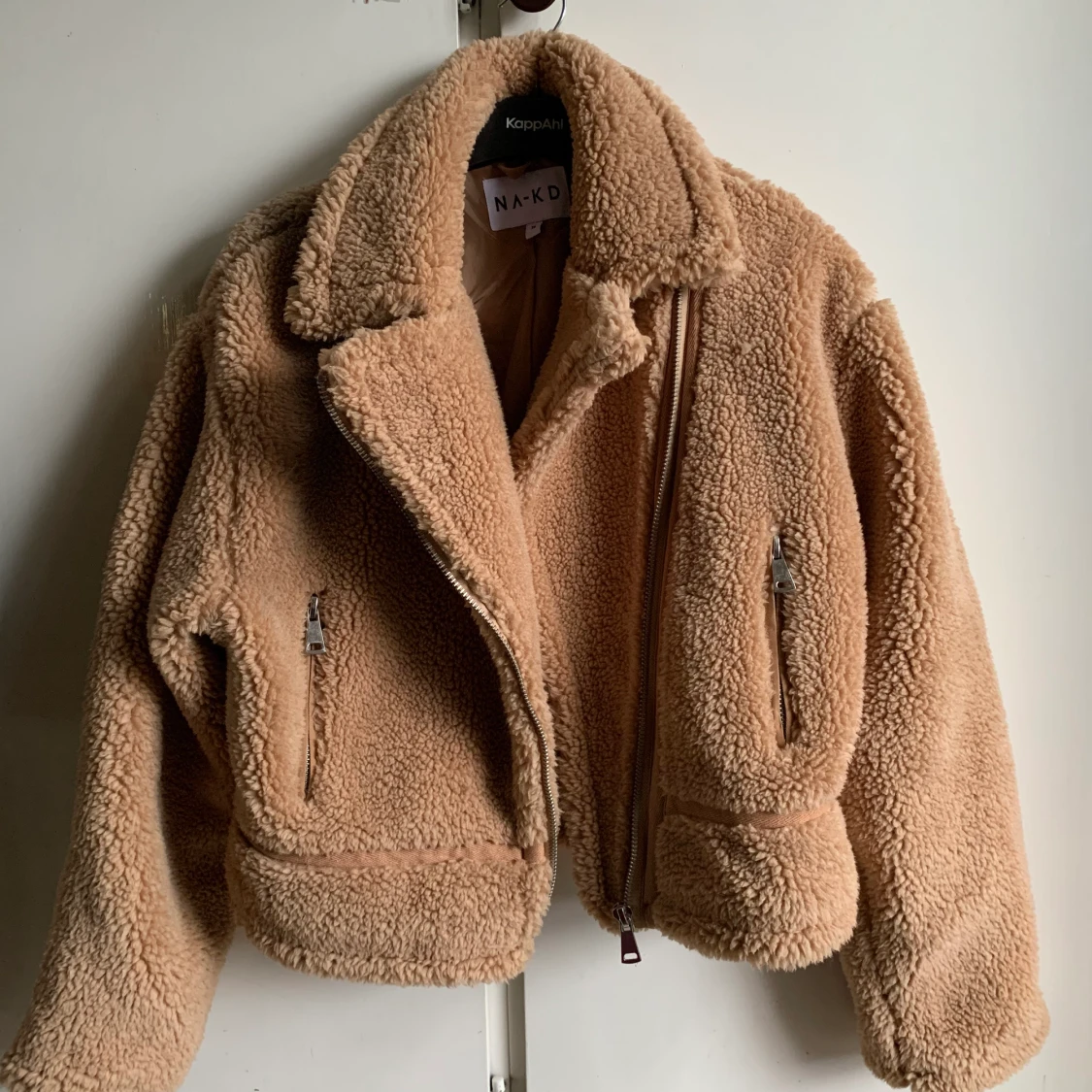 En beige teddypäls jacka som inte använts mer än 3 gånger! Köpt från NA-KD för 899 kr. Fickor med dragkedja på sidan samt dragkedja vid ärmarna. Bra kvalite. Kan användas på vinter såväl som vår/höst