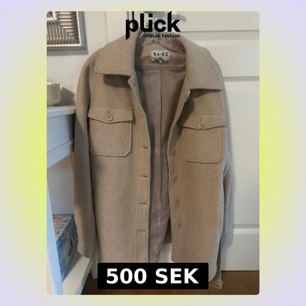 Snygg beige jacka från NA-KD med stora bröstfickor, knappar framtill och bälte i midjan. Jackan har klassisk krage och är långärmad, perfekt för lager-på-lager. Materialet är mjukt och känns lyxigt, med en clean och stilren look.