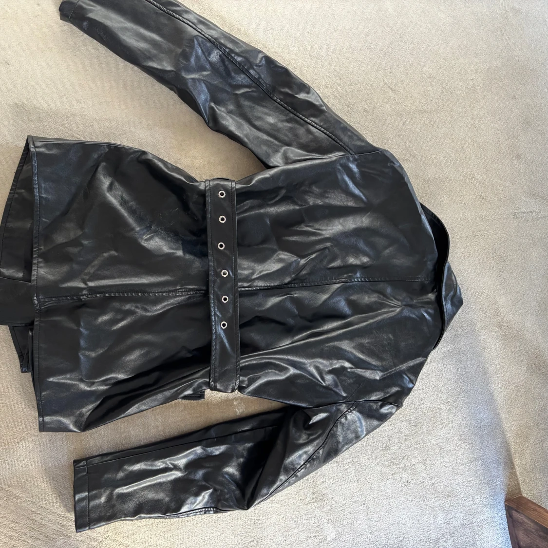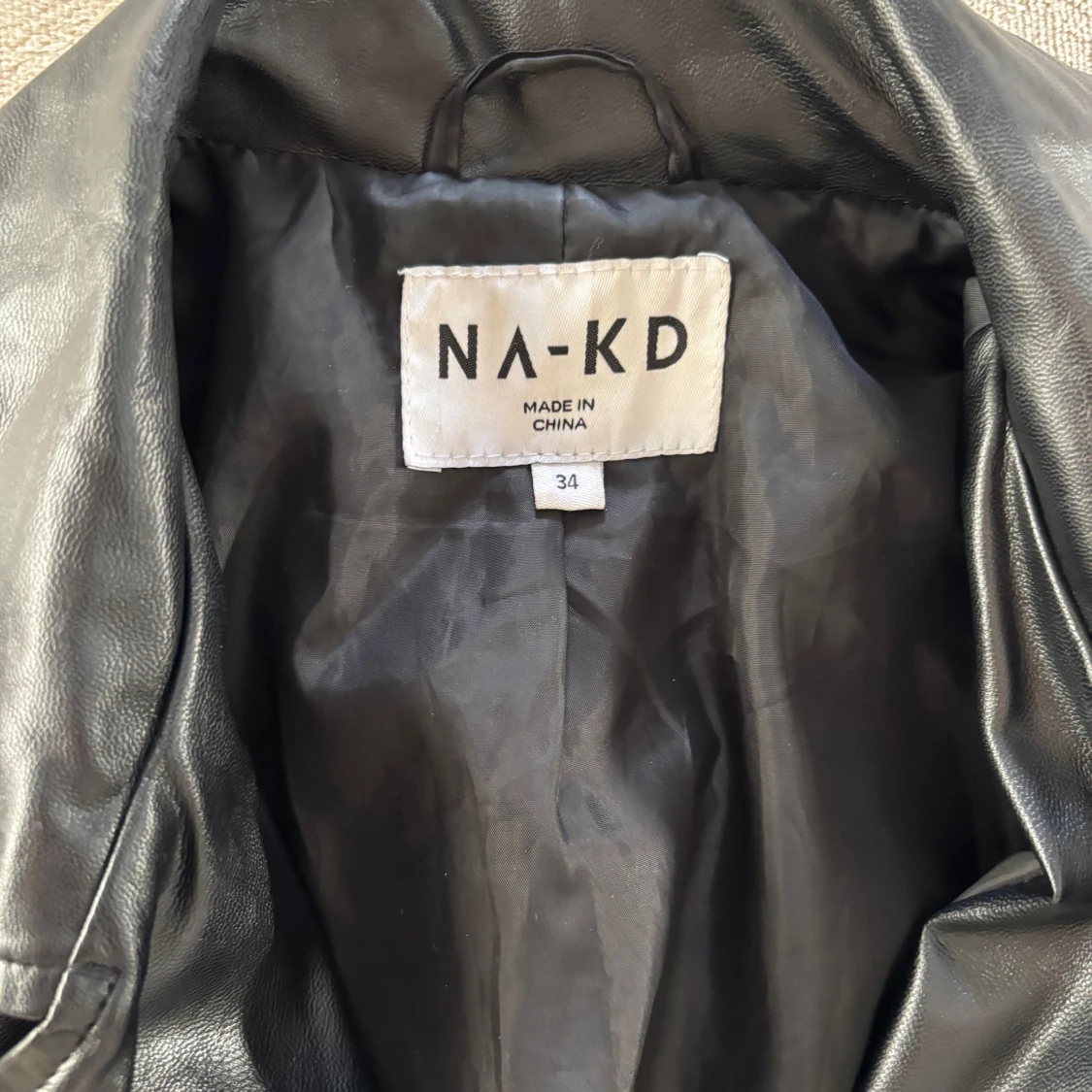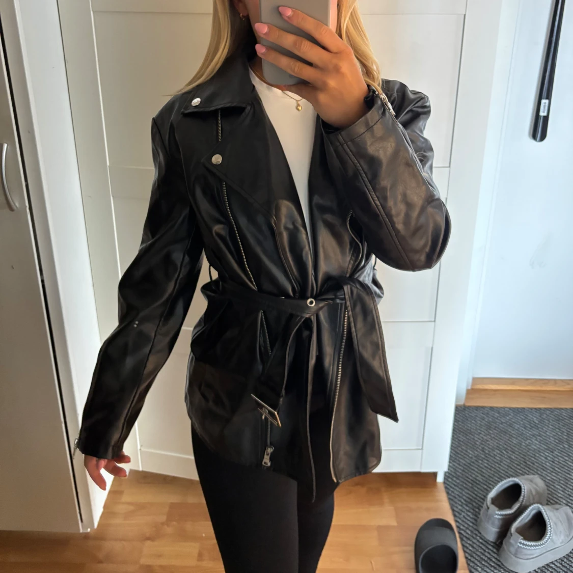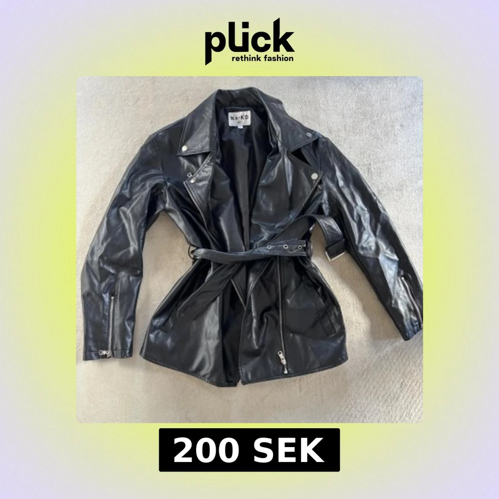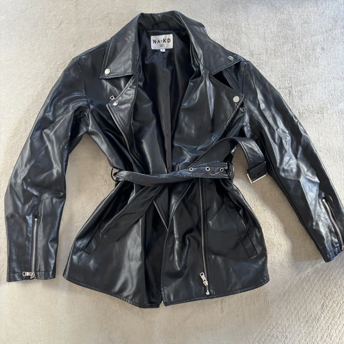 Svart skinnjacka från NAKD med bälte i midjan, stl 34