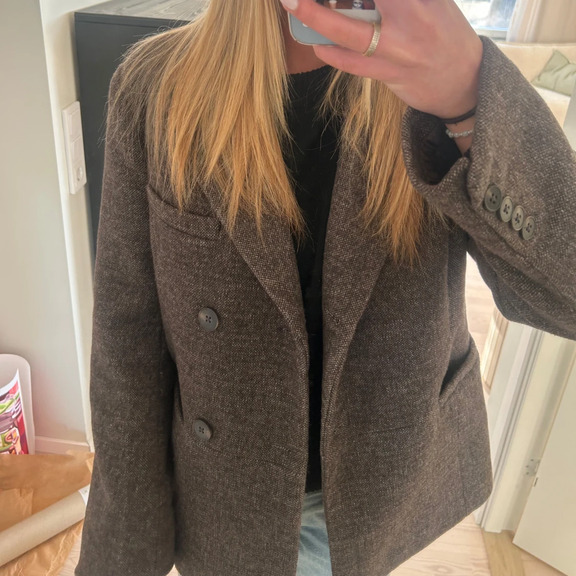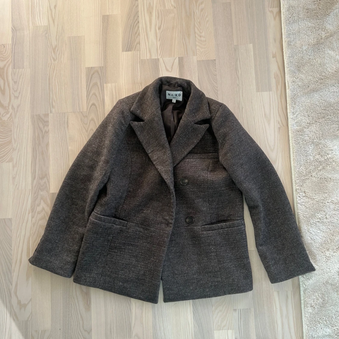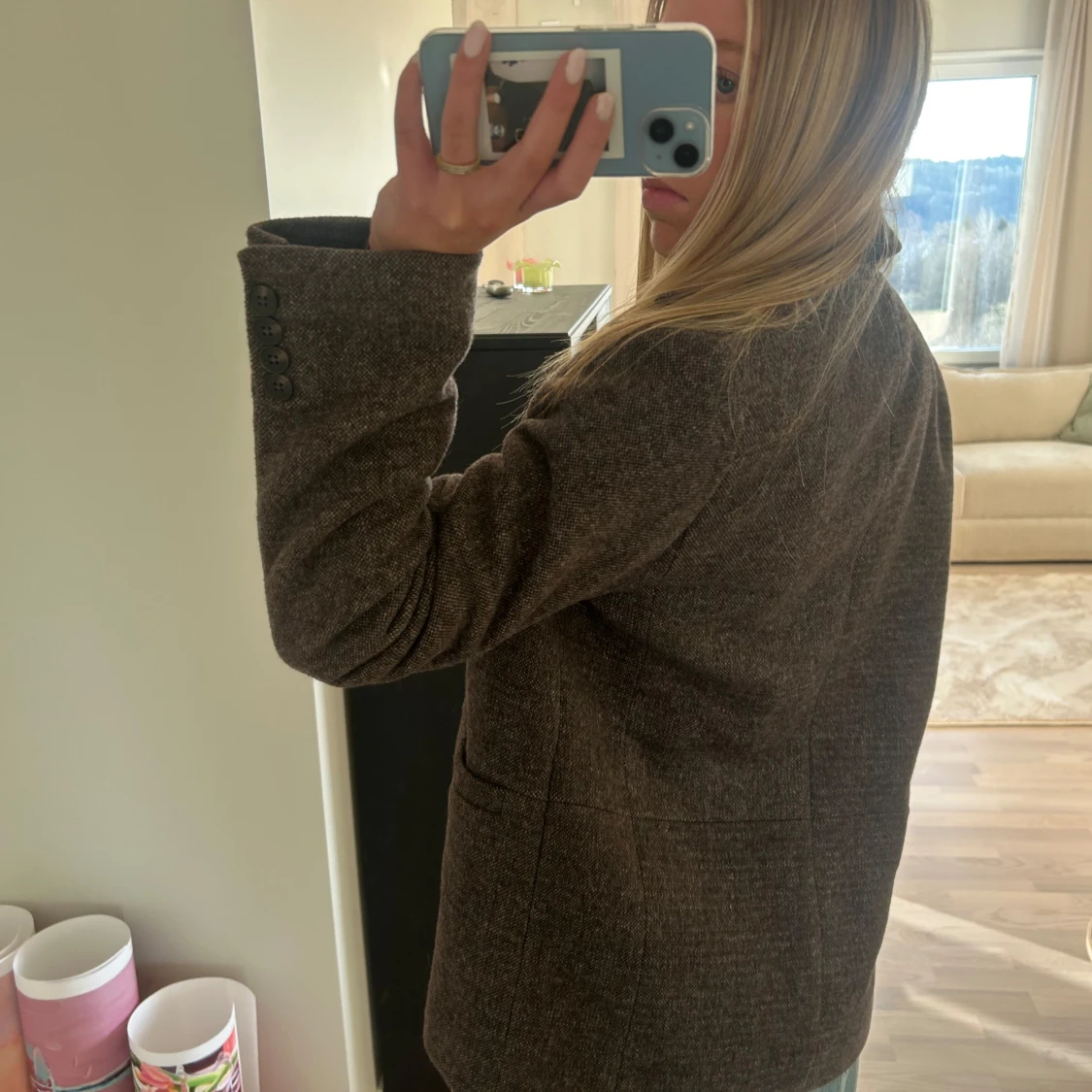 Oversized brun blazer jacka i ullblandning. Använd fåtal gånger och är som ny, jättebra kvalité! Storlek 36 från NAKD, nypris 1200 kr 🤎