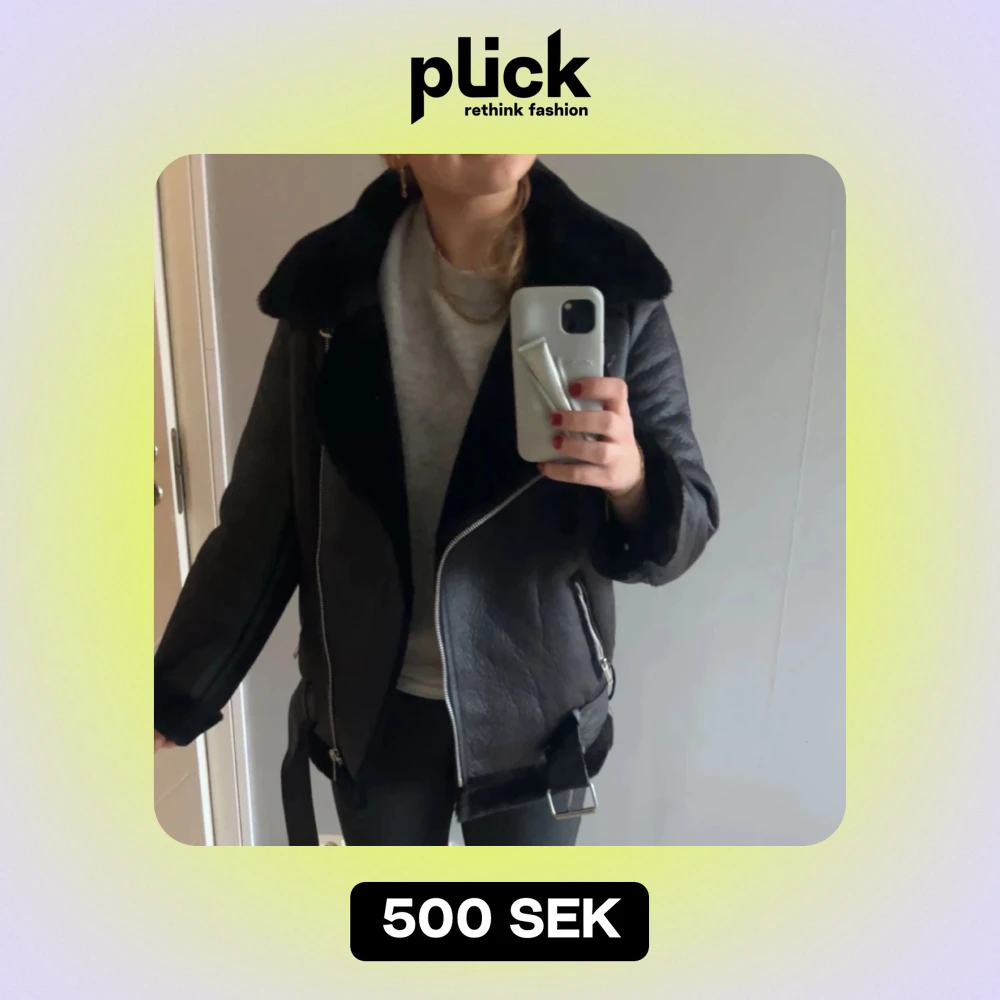 Säljer en snygg svart skinnjacka med mjukt foder och dragkedja. Jackan har en cool bälte-detalj i midjan och långa ärmar. Perfekt för höst och vinter när du vill hålla dig varm och stilren. Passar till både vardag och fest! 💞Orginalpris när jag köpte 799kr