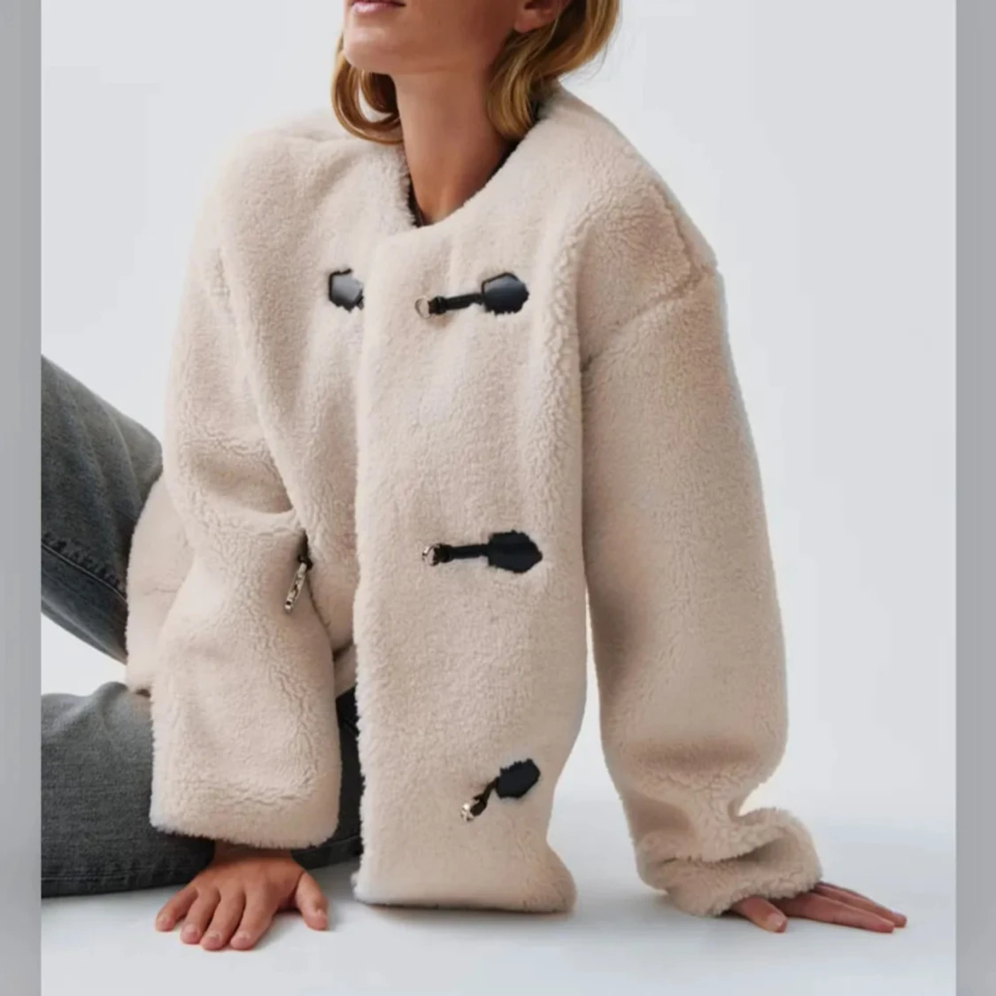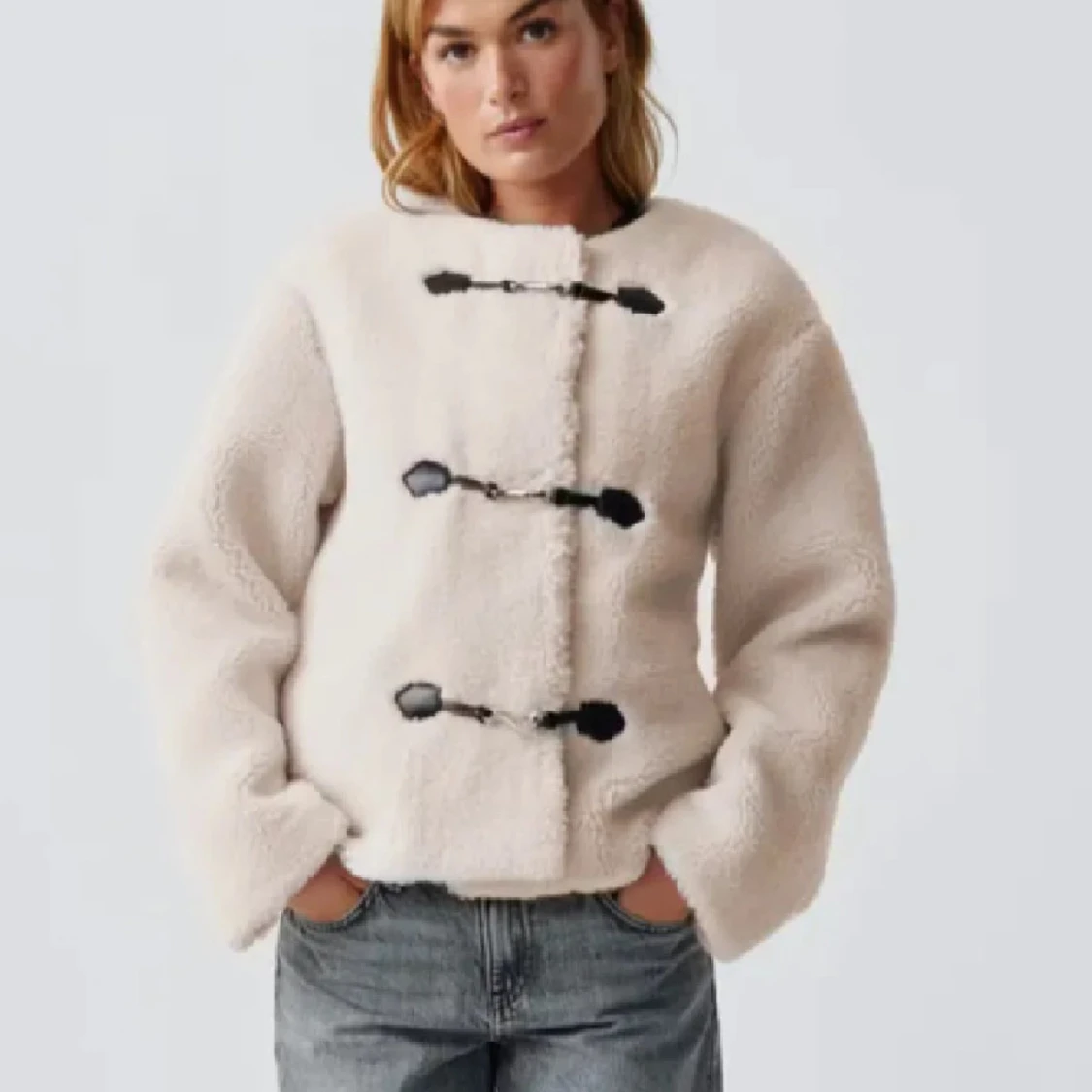 Supermjuk teddyjacka i beige från Gina Tricot med oversized passform och coola svarta spänndetaljer framtill. Jackan har rund hals, långa ärmar och fluffigt material som ger en chill vibe. En exemplarisk jacka till hösten som är så gosig. PRIS KAN DISKUTERAS ALLTID