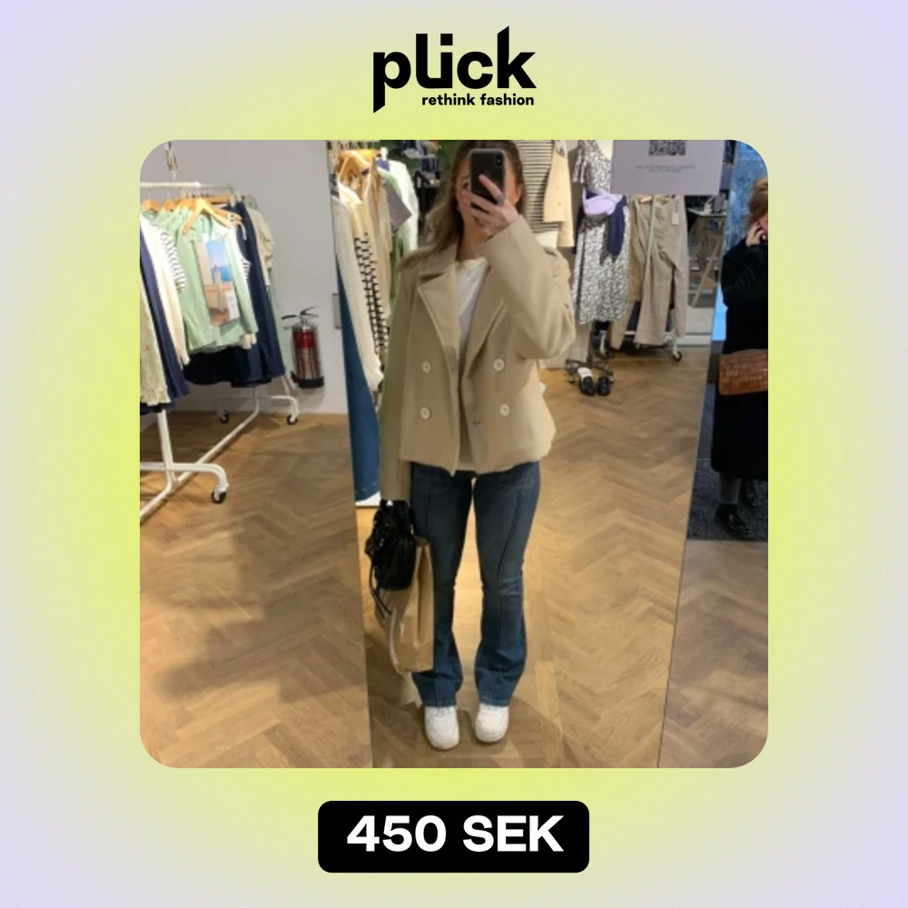Beige kappa med vita stora knappar från NA-KD. Väldigt fint skick. Hel och ren. Inga defekter. Nypris(köpt för): 799 kr