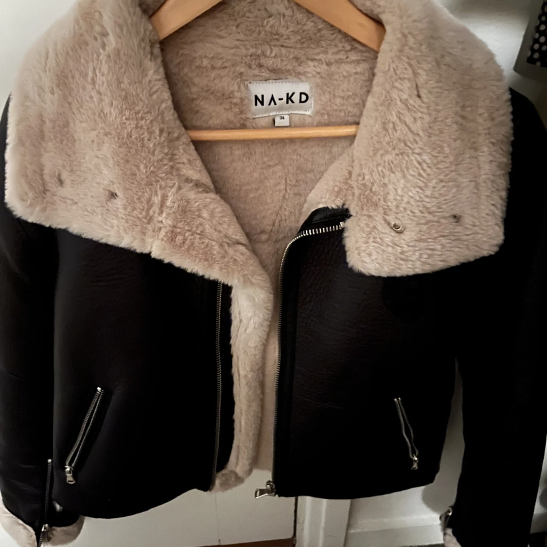 En jacka med fake skinn och fuskpäls från NAKD, stor i storleken. Har vanligtvis 36/38 i jackor. Köparen står för frakt🥰