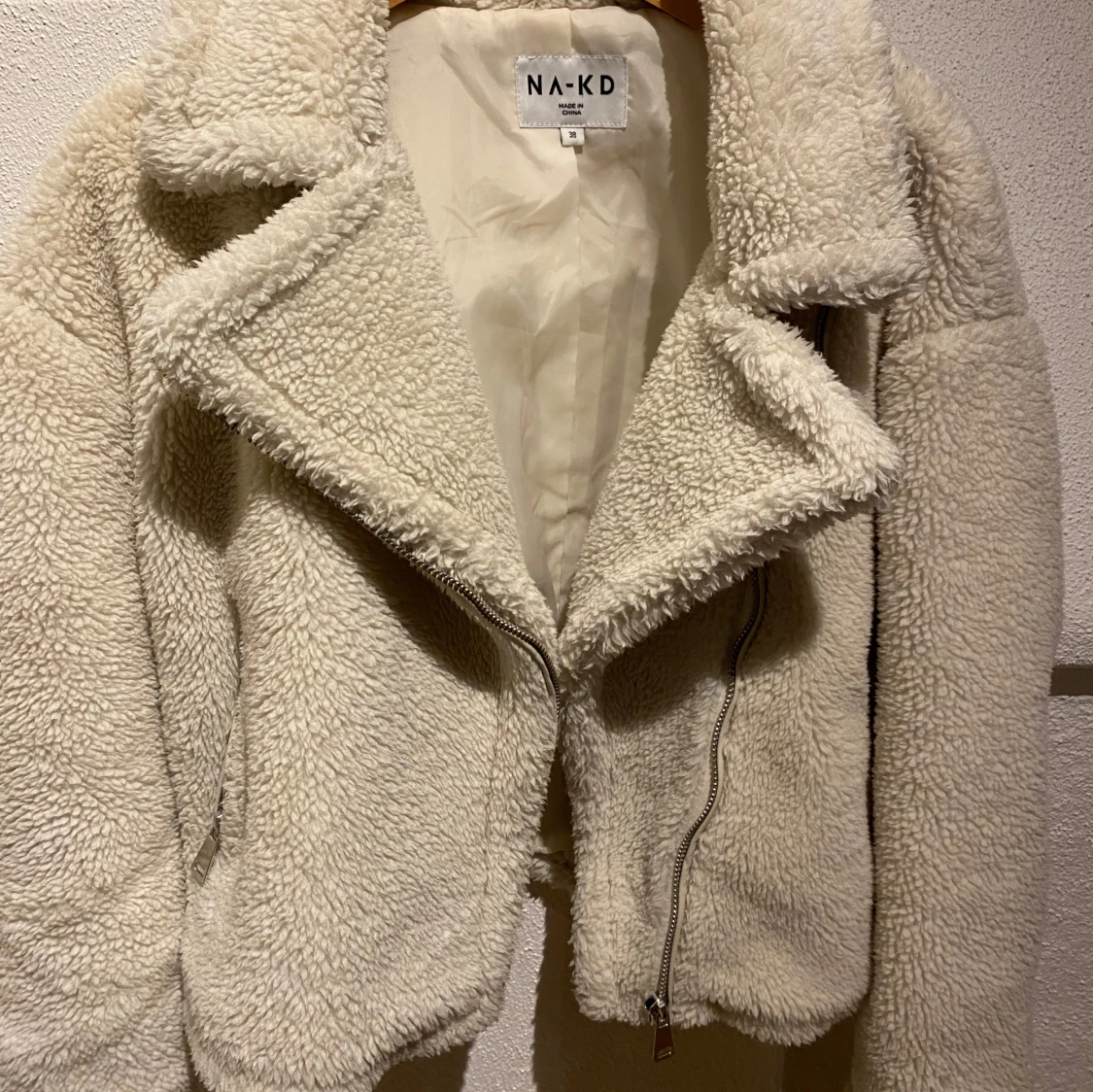 Supermysig vit teddyjacka från NA-KD i storlek 38💕säljer då den inte kommer till användning längre