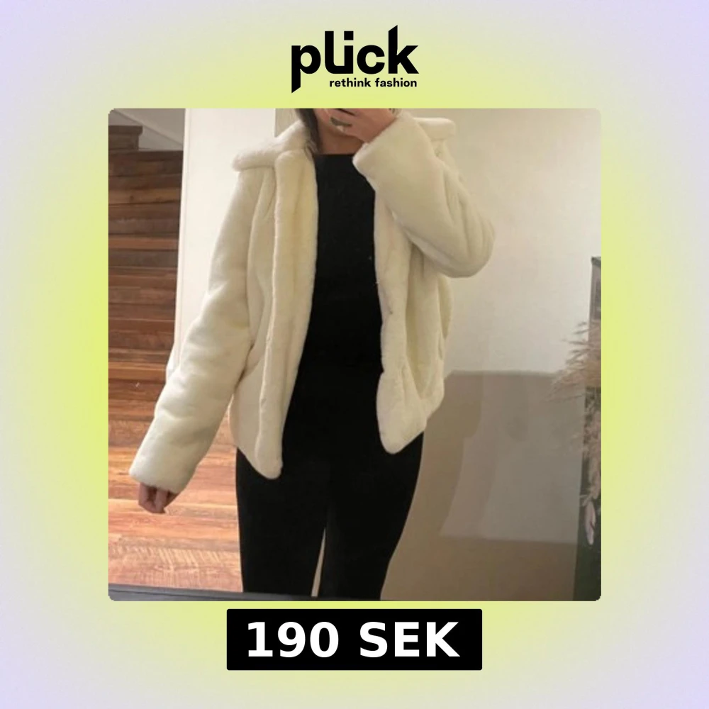 Säljer en supermjuk och stilren vit pälsjacka. Jackan har en normal passform med långa ärmar och en mysig krage. Perfekt för att hålla sig varm och trendig under kyliga dagar. Knäppet på jackan har gått av som man kanske kan se på sista bilden.