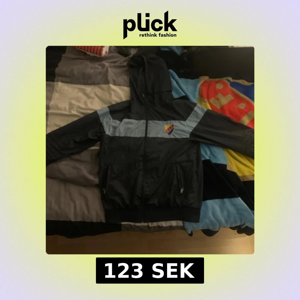 Svart och ljusblå vindjacka med huva från Djurgården. Jackan har klubbens emblem på bröstet, hel dragkedja framtill och två fickor med dragkedja. Perfekt för dig som vill visa ditt lagstöd och hålla dig skyddad mot vinden. Jackan köptes för 6 år sedan limiterad så de finns ingen som har den:)buda nått