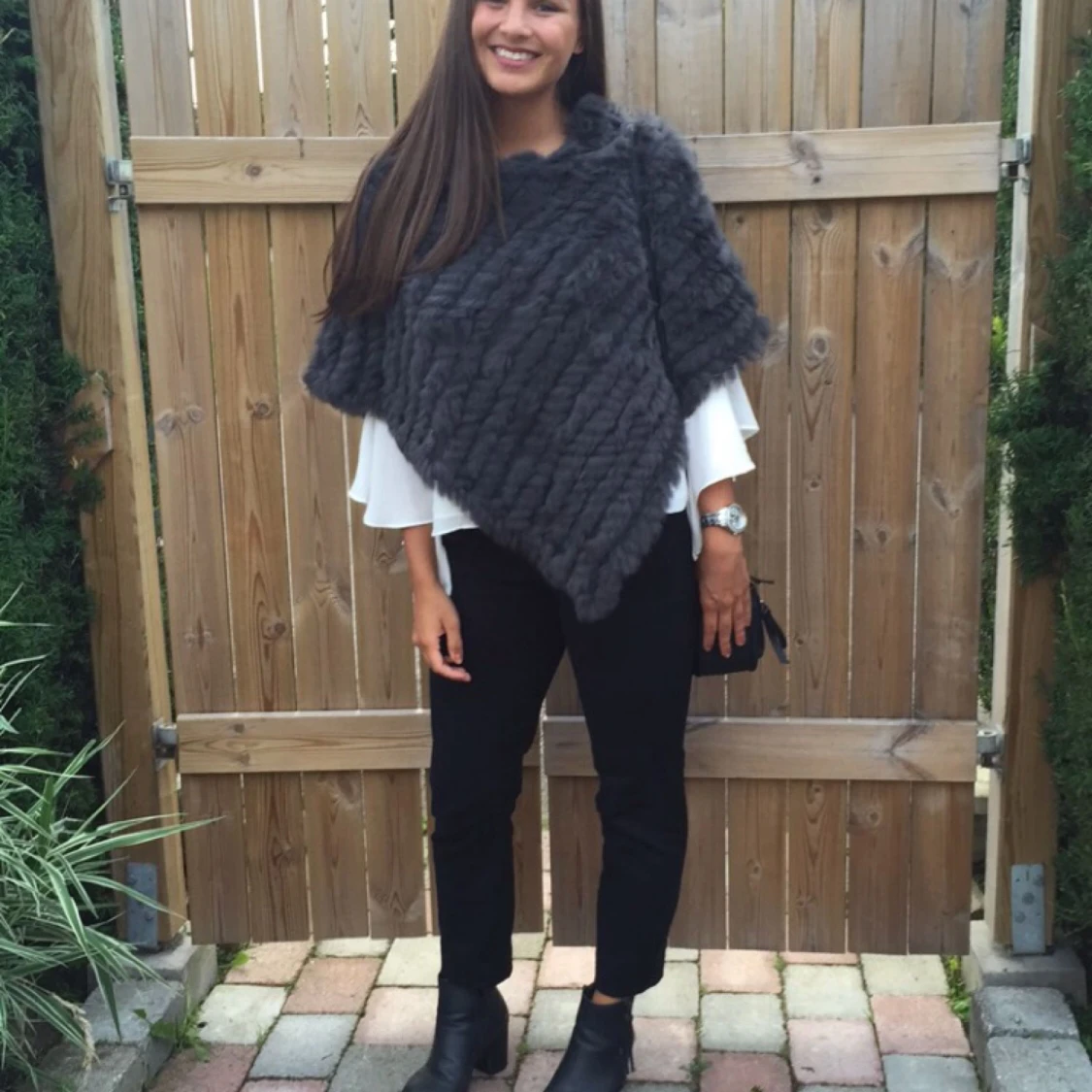 Äkta pälsponcho köpt på miinto.se. Ser lite konstig ut på andra bilden men hade blixt på, den första bilden visar hur den ser ut! Frakt tillkommer