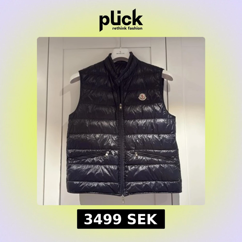 Säljer en marinblå dunväst från Moncler med hög krage och två dragkedjefickor framtill. Västen är storlek 3 vilket motsvarar M-L. Passar perfekt till mig som vanligtvis bär M. Den är använd vid ett få tillfällen och stått mest i garderob därav säljes den. Västen har Moncler-logga på bröstet och stängs med dragkedja. Perfekt för lager-på-lager och stilren look. Hör av er vid frågor!