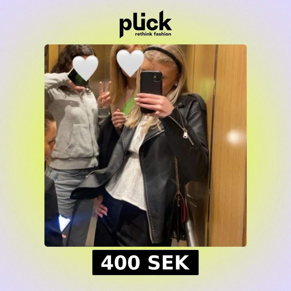 Snygg svart skinnjacka med dragkedja och klassisk design. Perfekt för en cool och stilren look. Jackan är köpt från nelly och är lite oversized💓