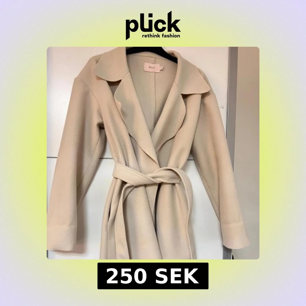 Creme färgad kappa från Nelly med knytskärp i midjan. Fint skick, bara lite knottrig på vissa ställen.