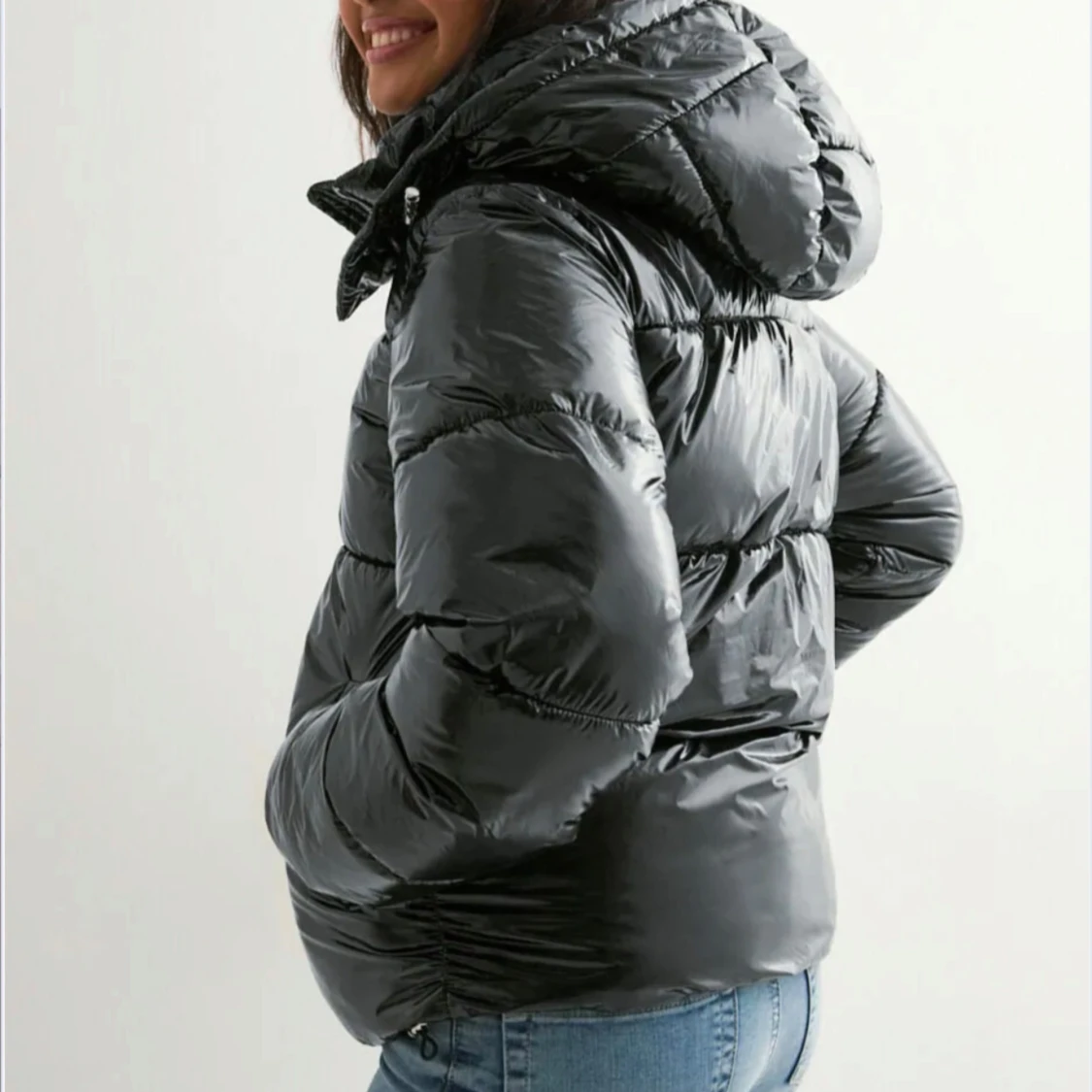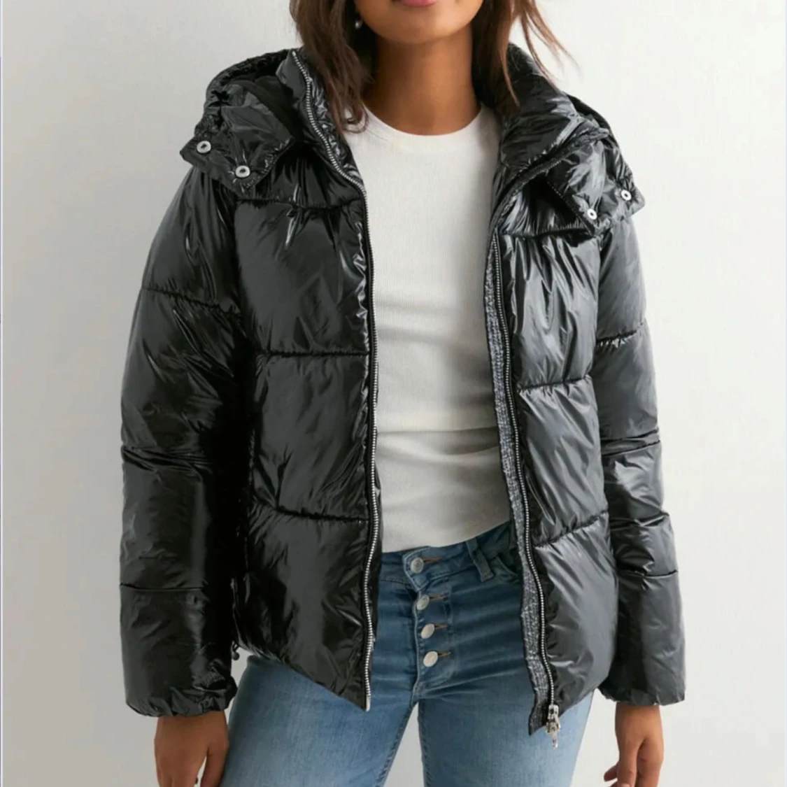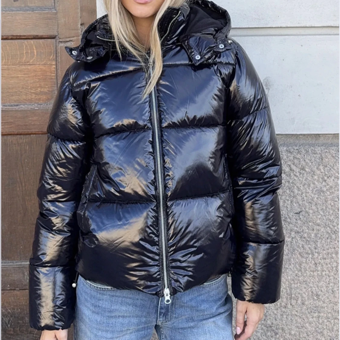 Säljer en svart, glansig pufferjacka med huva och dragkedja framtill. Köpt på Nelly för 800kr, men passar inte på mig och kan inte skicka tillbaka så säljer därför här istället. Har använt typ 2 gånger så är i väldigt bra skick, skriv om ni har några funderingar eller vill ha egna bilder ❤️