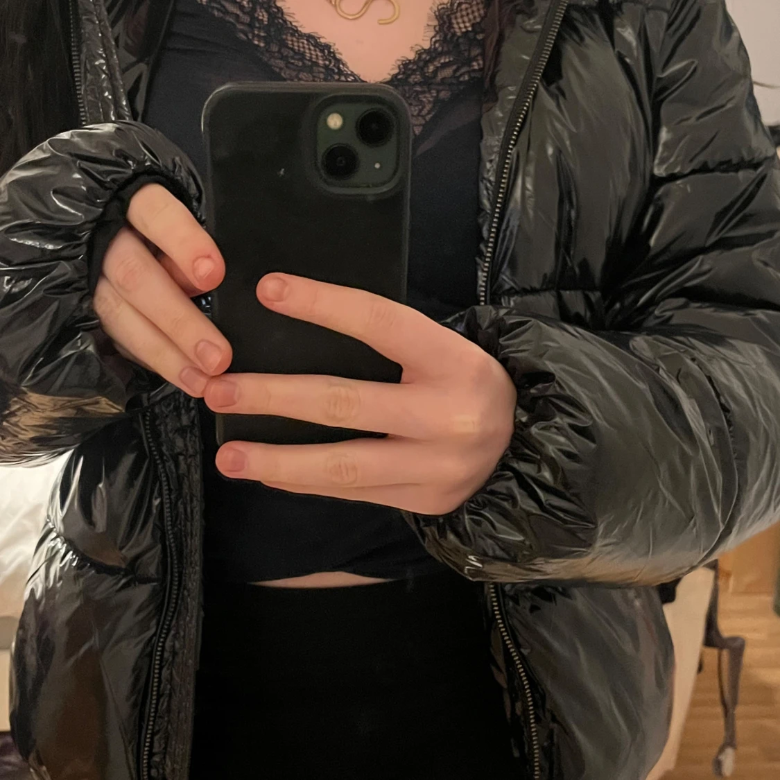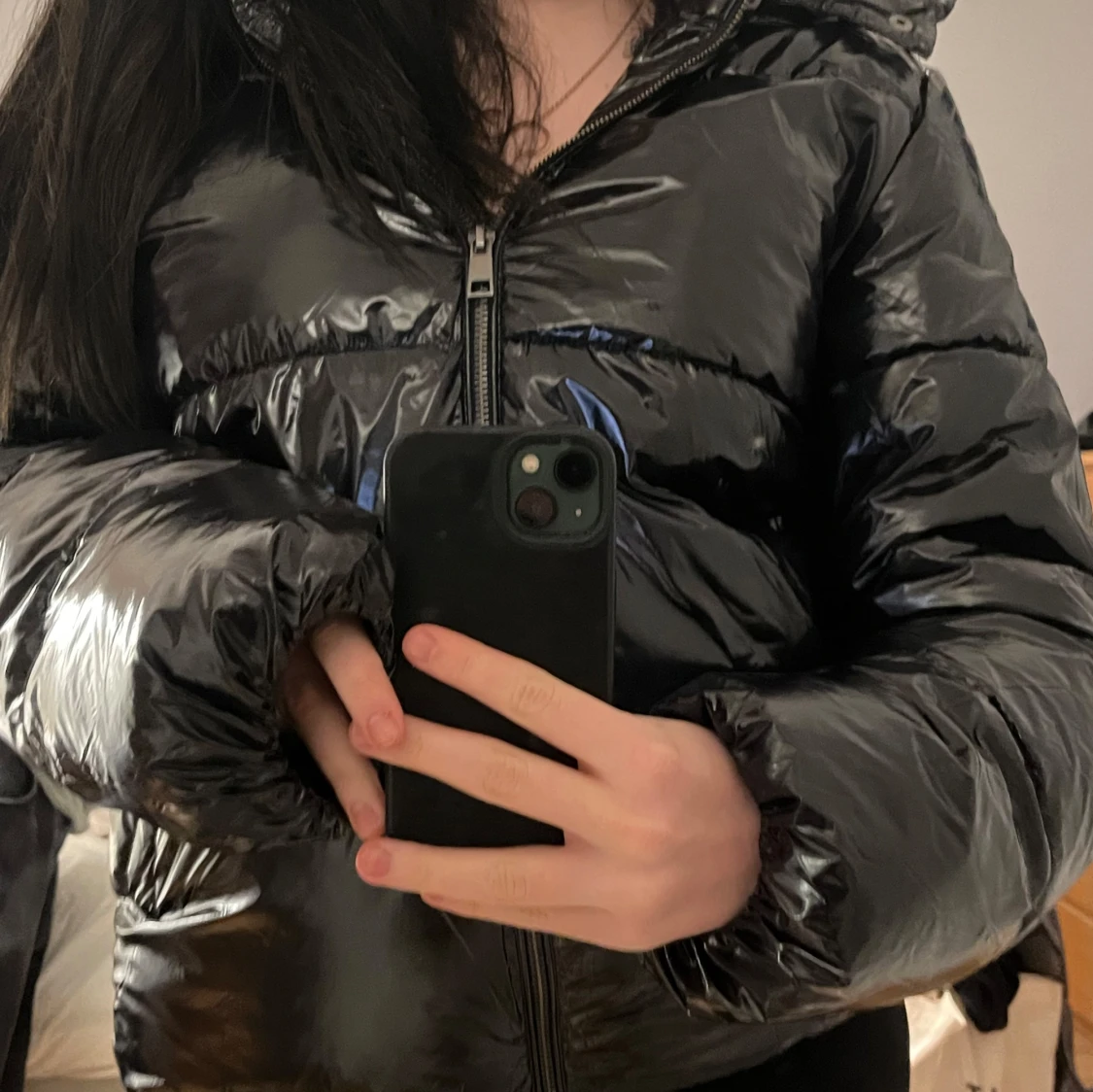 Säljer en snygg populär svart pufferjacka i mycket bra skick med glansig yta. Jackan är från Nelly! Enligt mig håller den värmen perfekt under vintern! Skriv för fler frågor🩷