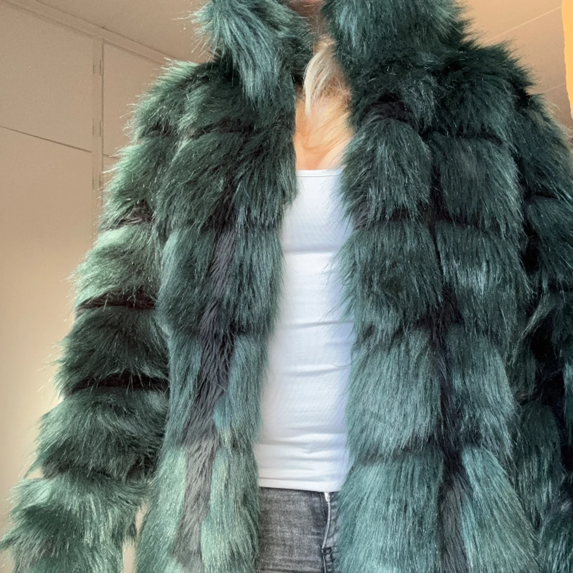 Grön pälsjacka från Nelly i storlek 32 Den är i lite oversized Så snygg grön!