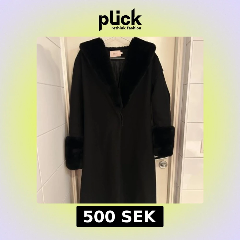 Svart kappa med päls från NELLY , väldigt fin kappa som går in vid midjan när man stänger den. Kan sänka pris vid snabb affär