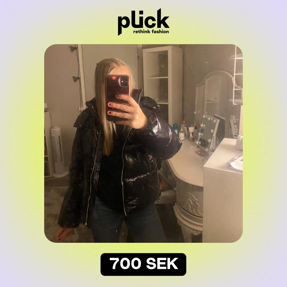 Säljer en svart glansig pufferjacka i storlek Xs. Jackan har en dragkedja framtill och är perfekt för kalla dagar. Superbekväm och jättefin!