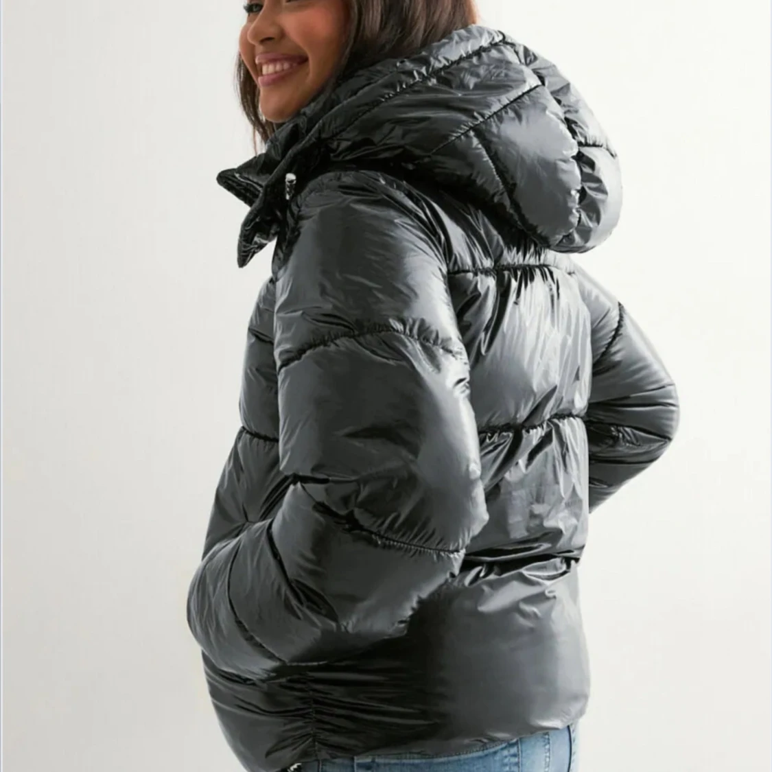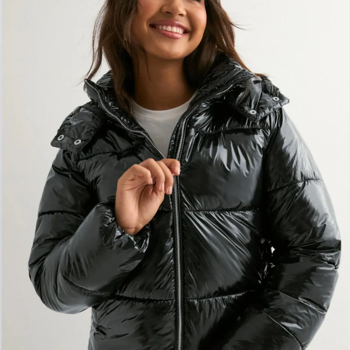 Säljer en svart, glansig pufferjacka med huva och dragkedja framtill. Jackan är perfekt för kalla dagar. Materialet är syntet och jackan har långa ärmar. Använd endast en säsong och inte använt den så flitigt. Nypris 800kr, mitt pris kan diskuteras, kom privat för mer bilder🥰💞