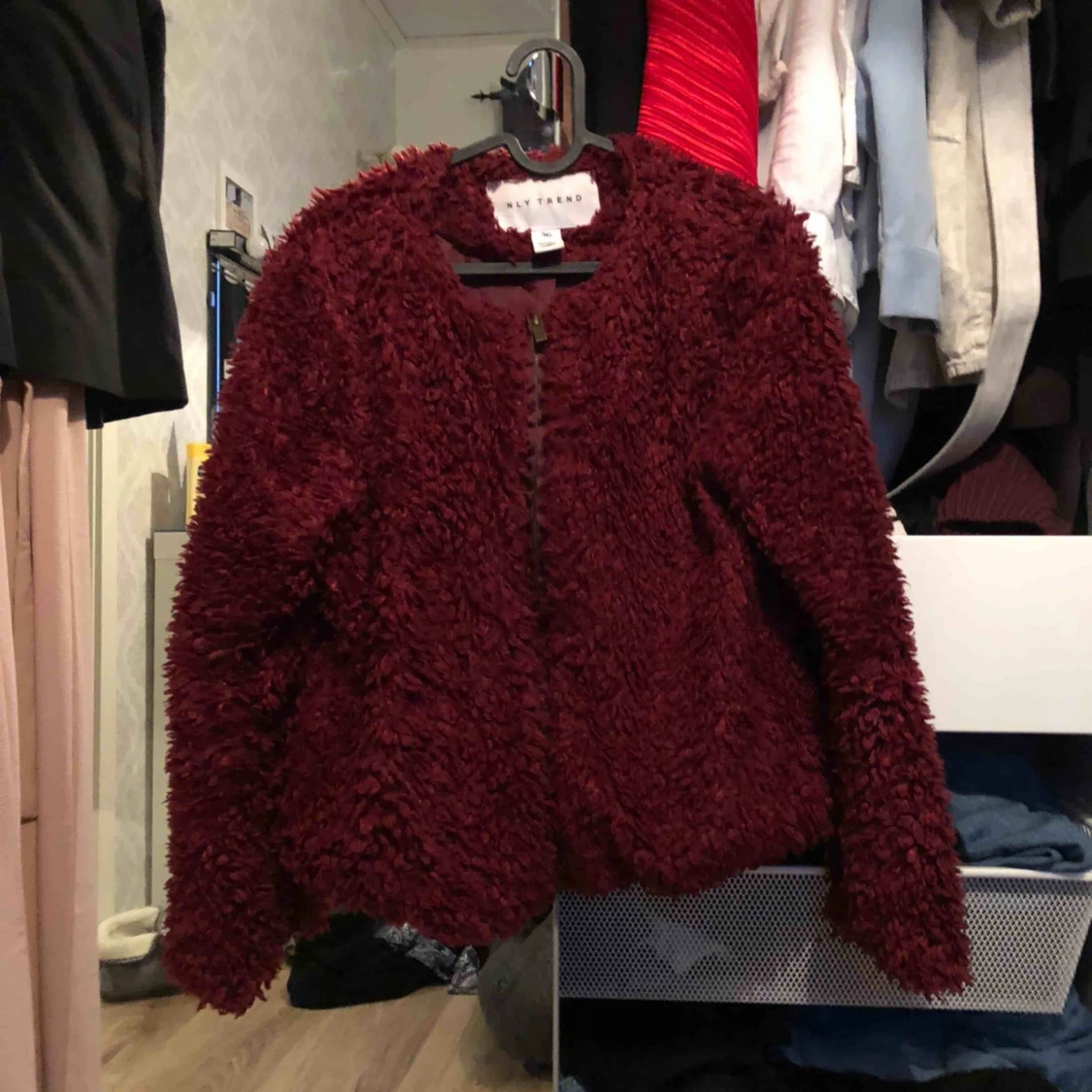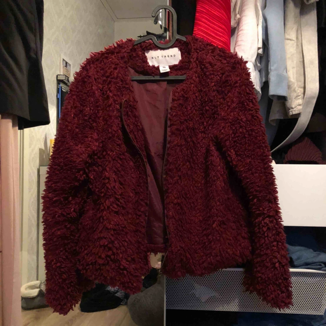 Riktigt mysig jacka från Nelly i storlek XS/S. Själva innefodret har spruckit lite i tyget på höger sidan (en liten del), men det är absolut inget som syns när jackan är på 😄