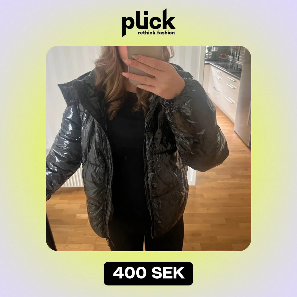 Säljer en svart glansig pufferjacka i mycket bra skick. Då jag inte använt den. Jackan är fodrad inuti därför väldigt varm! Säljer den eftersom jag köpt en ny vinter jacka!