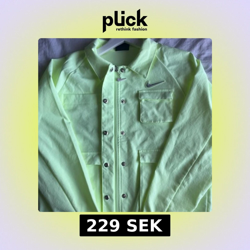 Nike overshirt i neongult, fyra fickor framtill och silverfärgad dragkedja. Jackan har långa ärmar med resår vid handlederna och snyggt Nike Swoosh-märke på bröstet. I storlek S☺️
