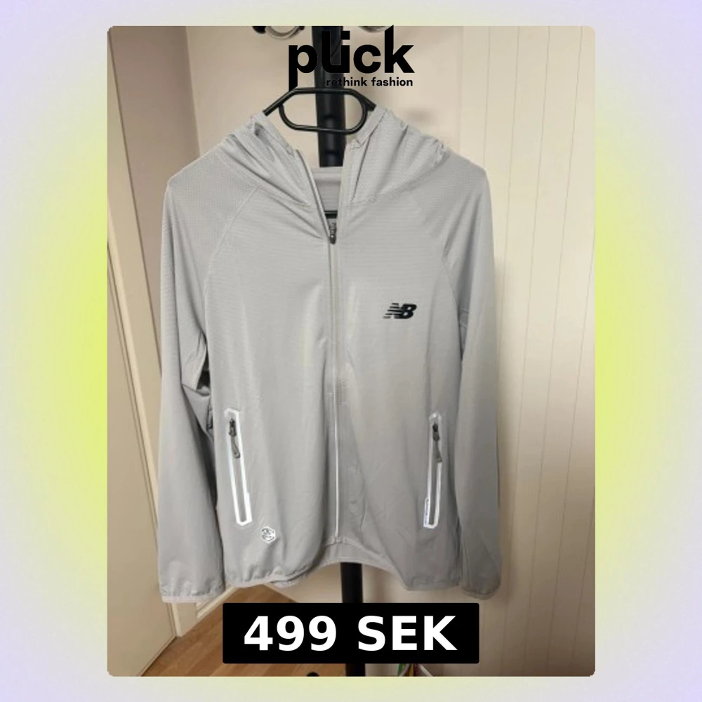 Snygg ljusgrå vindjacka från New Balance med huva och hel dragkedja framtill. Jackan har två fickor med dragkedja och reflekterande detaljer. Perfekt för träning eller när du vill ha en sportig look. Materialet är lätt och känns skönt mot huden.