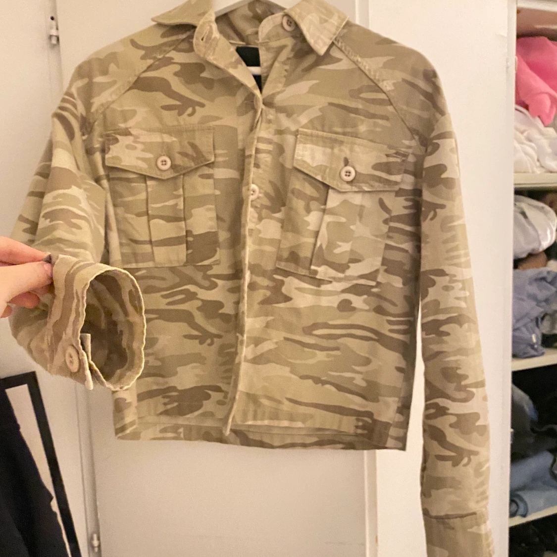 Snygg beige croppad kampuflagejacka, nästan aldrig använd🤎