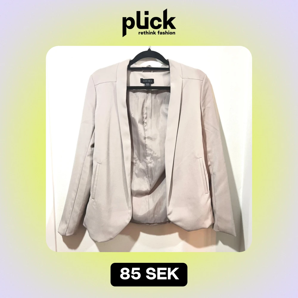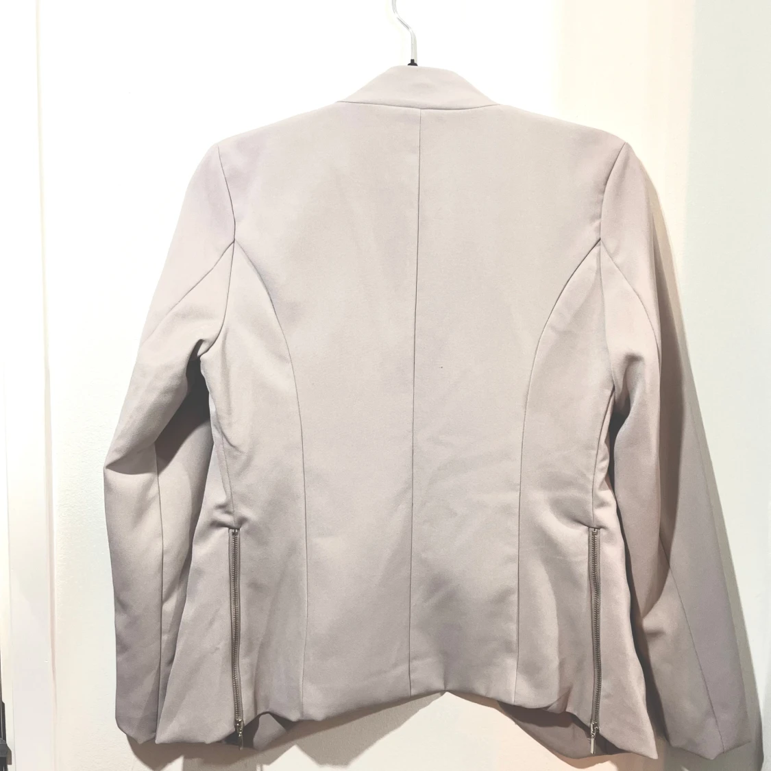 Snygg gråbeige kavaj med gulddetaljer baktill. Den har en stilren design med långa ärmar och en normal passform. Perfekt för både vardag och fest!