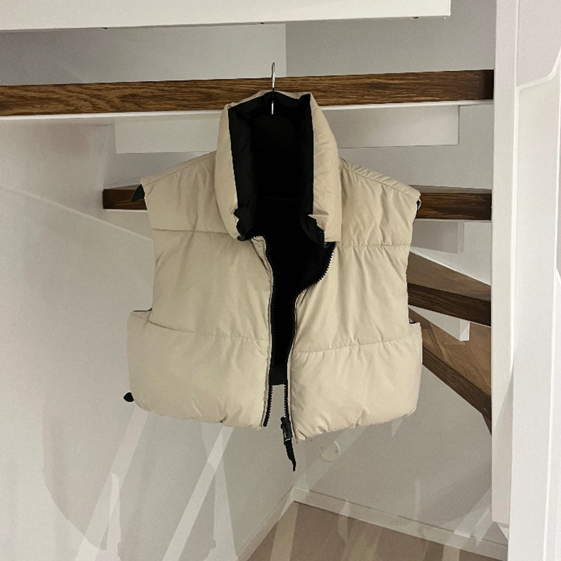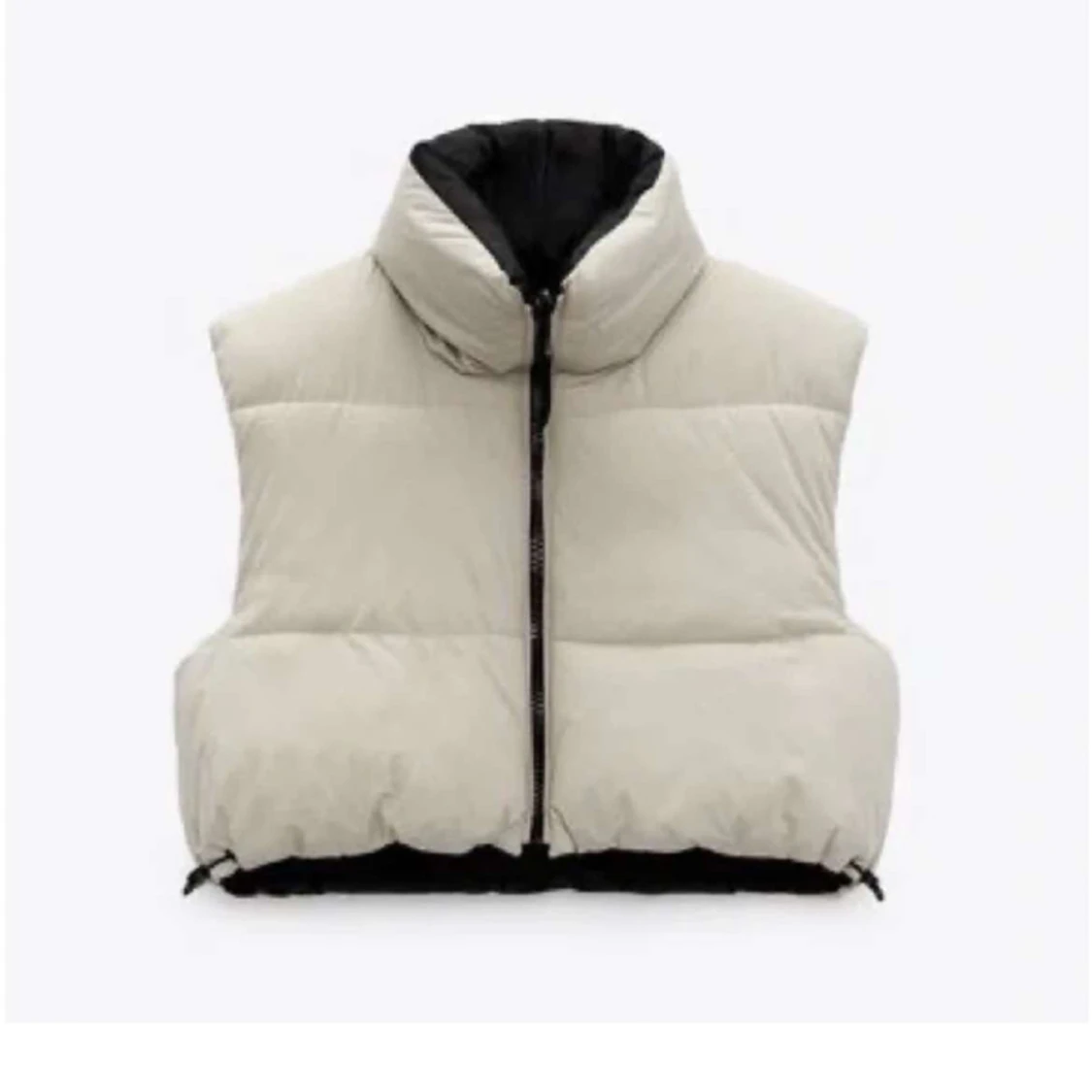 Denna söta croppade puffar västen är köpt ifrån Zara i strl S. Kan bytas till både beige och svart färg. För söt men aldrig använd. Skicka meddelande vid intresse/ fler bilder🤍