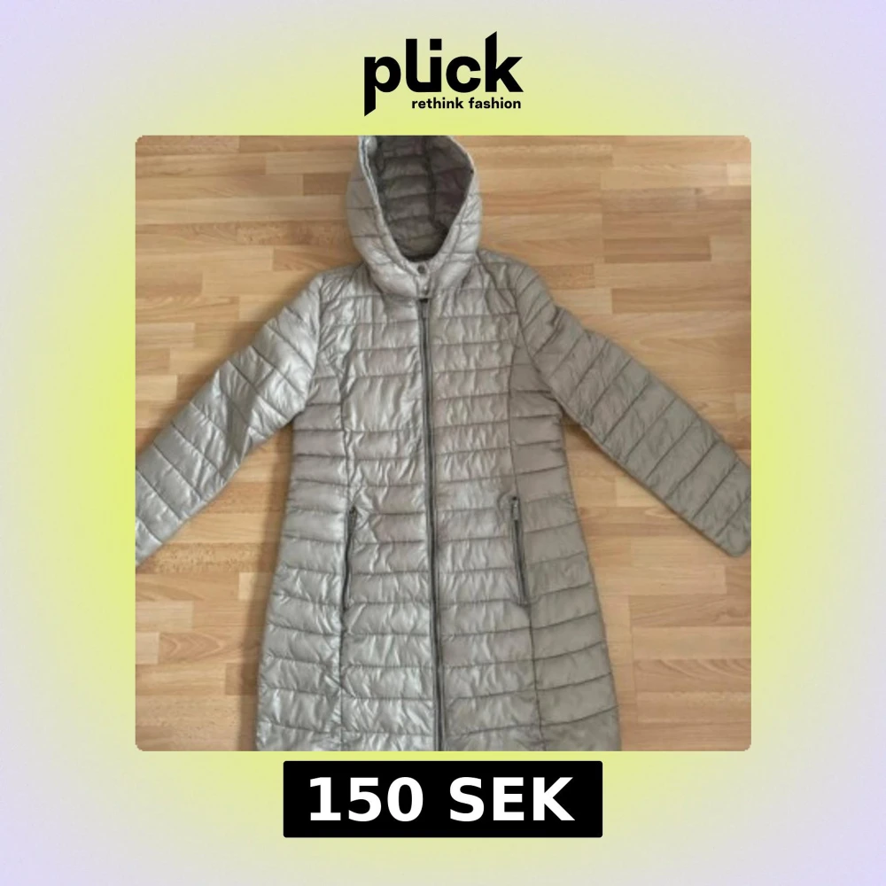 Snygg beige/ljusbrun jacka från Amisu som ny med huva och dragkedja hela vägen. Jackan är quiltad, har två fickor med dragkedja och är lång i modellen. Perfekt för kyliga dagar och ger en clean look till din outfit.Använd sparsam. Bröst 100cm, längd 88cm.