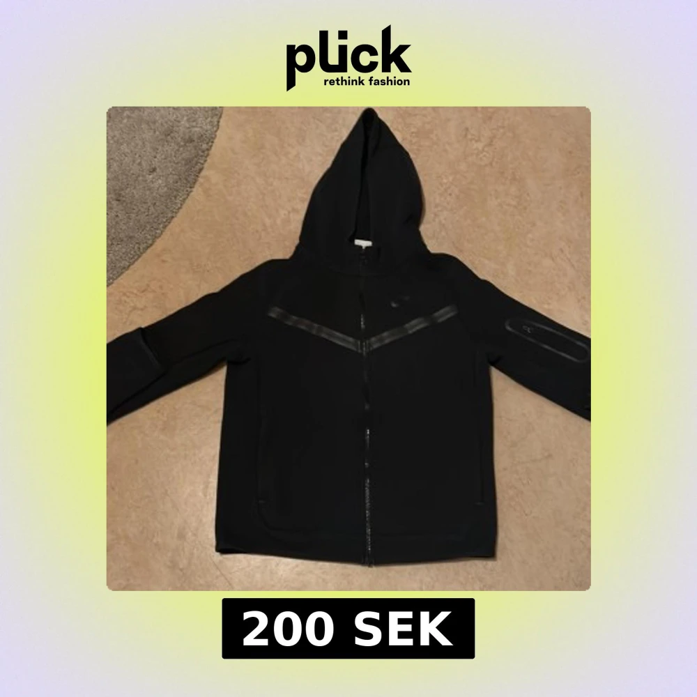 Säljer en svart hoodie från Nike med dragkedja och huva. Jackan har en stilren design med diskreta detaljer och är perfekt för en avslappnad stil.