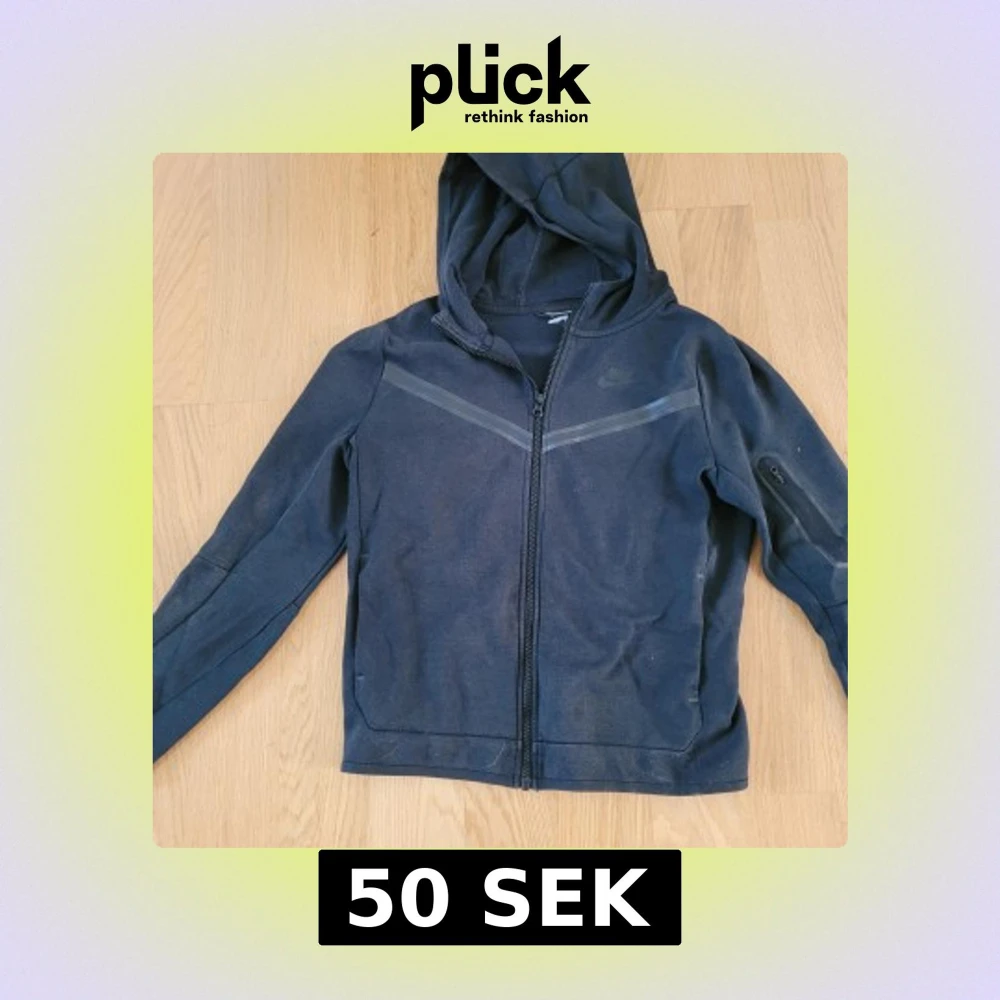 Nike tech hoodiejacka i svart med hel dragkedja framtill och huva. Den är svart I färgen, men vlivit lite urtvättad så börjar bli mer åt det grå hållet.