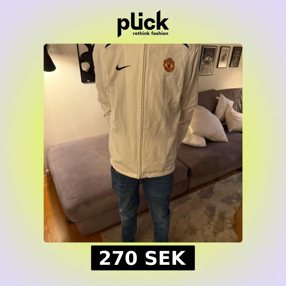 Röd träningsjacka från Nike med Manchester United-logga på bröstet. Jackan har hel dragkedja framtill, vita detaljer på ärmarna och Nike-logga. Perfekt för fotbollsfans som vill visa sitt stöd. Ingår även en vit jacka.