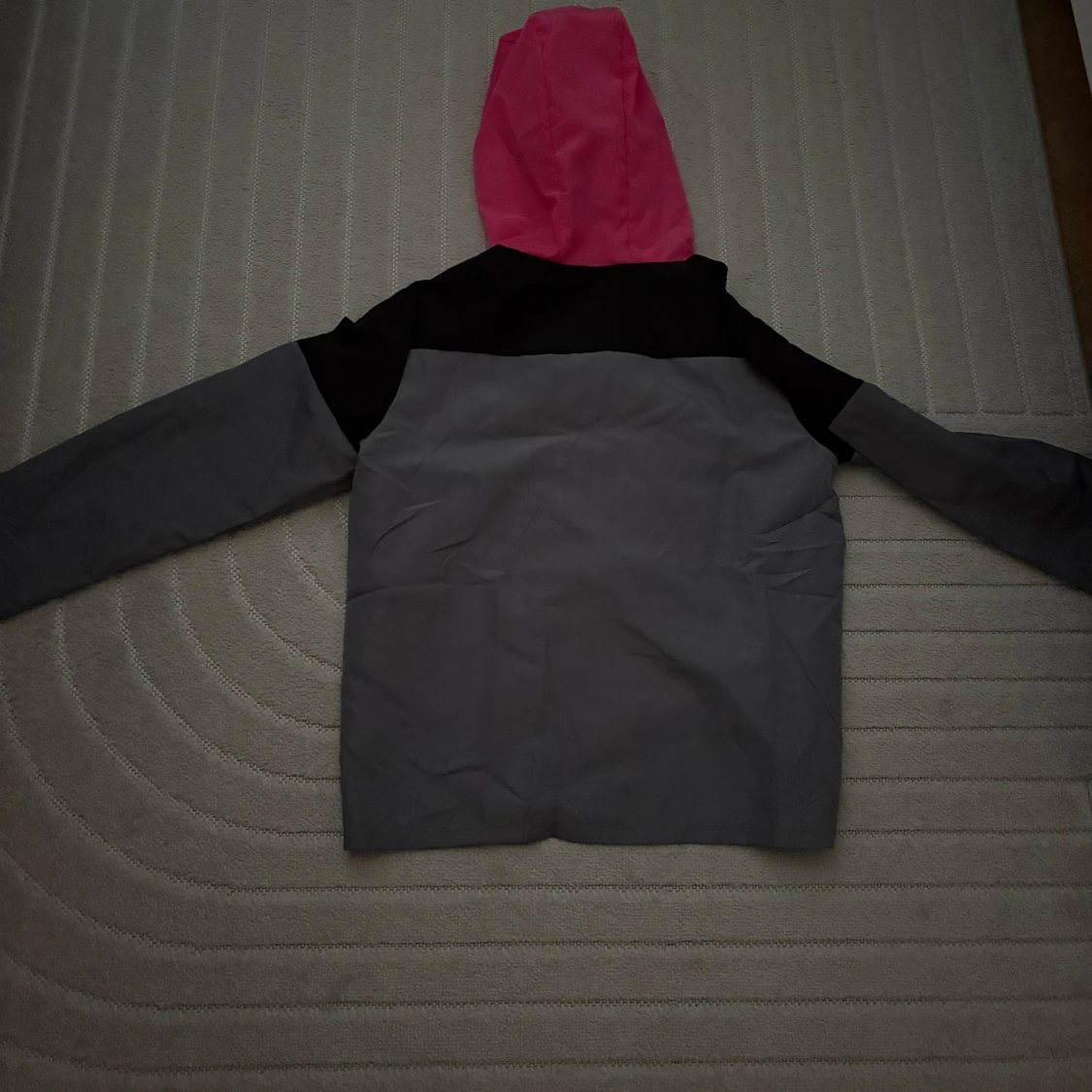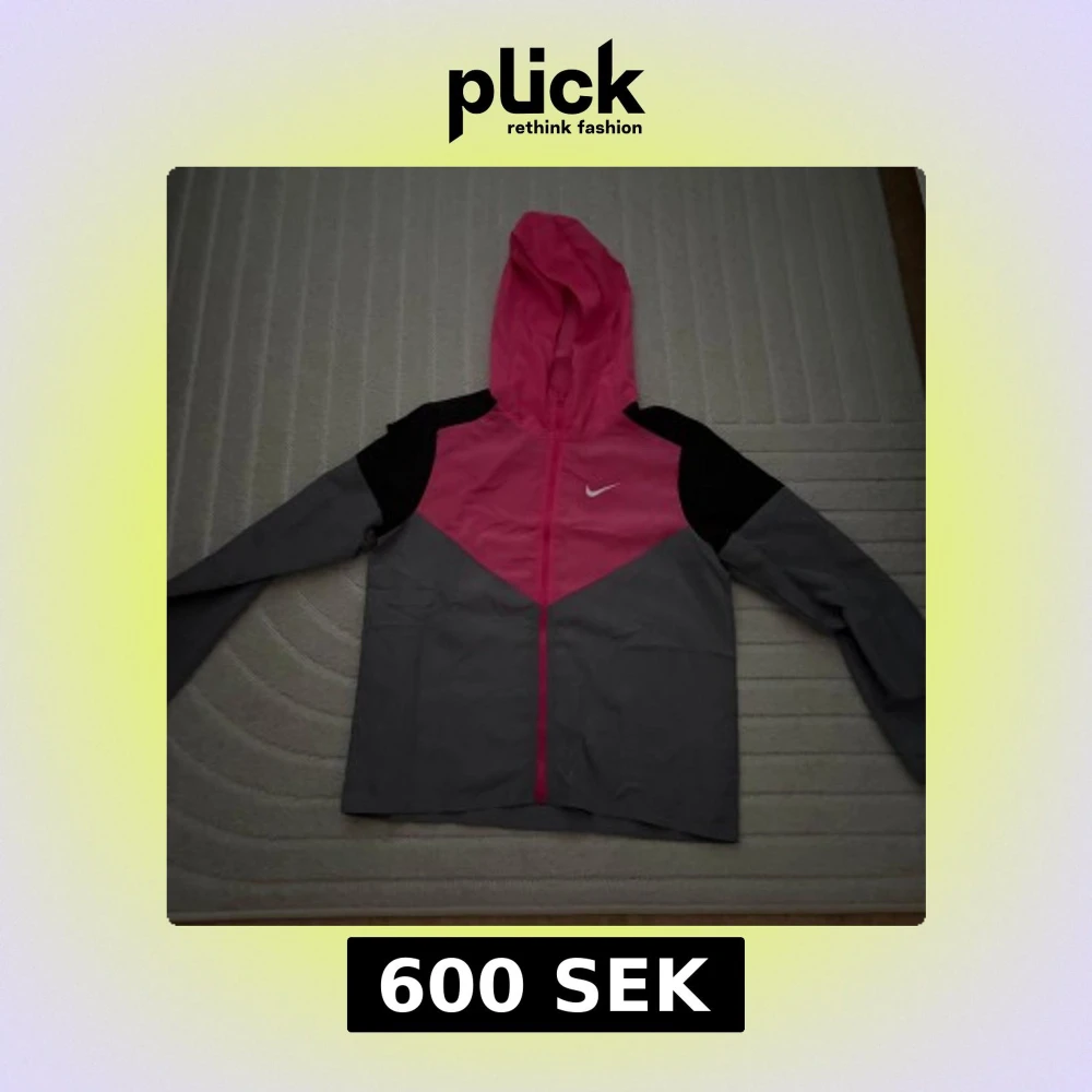 Nike vindjacka med snygg färgblock-design i rosa, grått och svart. Jackan har huva, hel dragkedja och lång ärm. Perfekt för blåsiga dagar och sportiga outfits. Ikonisk Nike-logga på bröstet för extra stilpoäng.