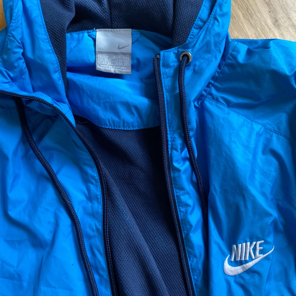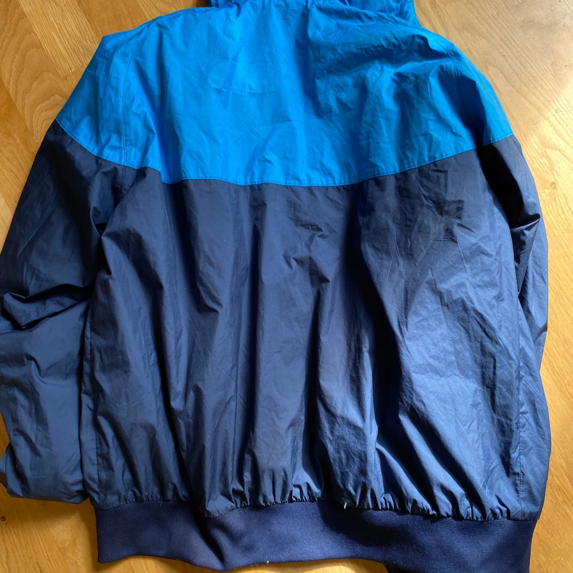 Nike vindjacka i två nyanser av blått med broderad logga på bröstet. Jackan har huva med snörning, dragkedja framtill och två fickor med dragkedja. Tillverkad i lätt polyester och har ribbade muddar nertill och vid ärmslut. Perfekt för en sportig look.