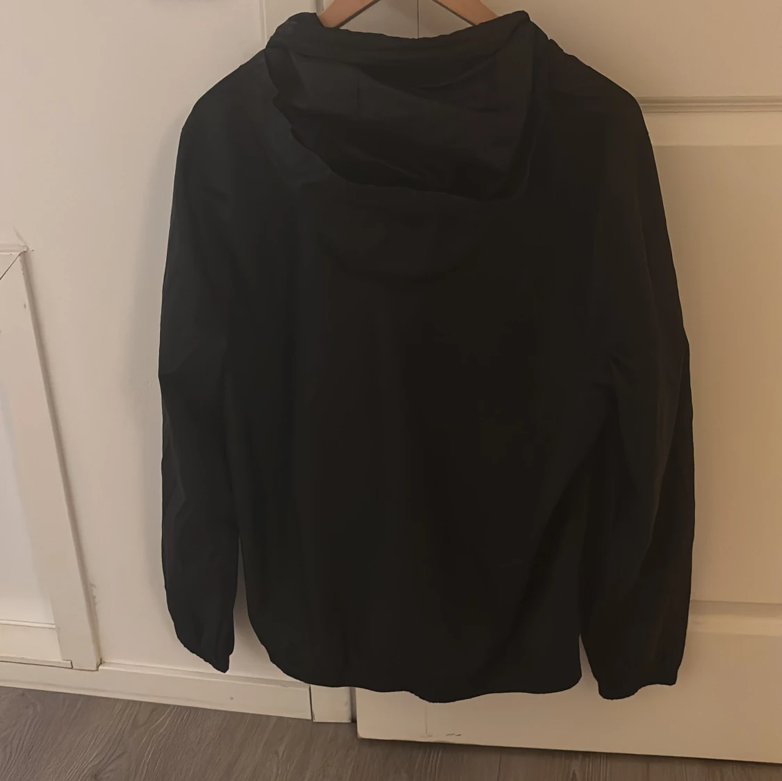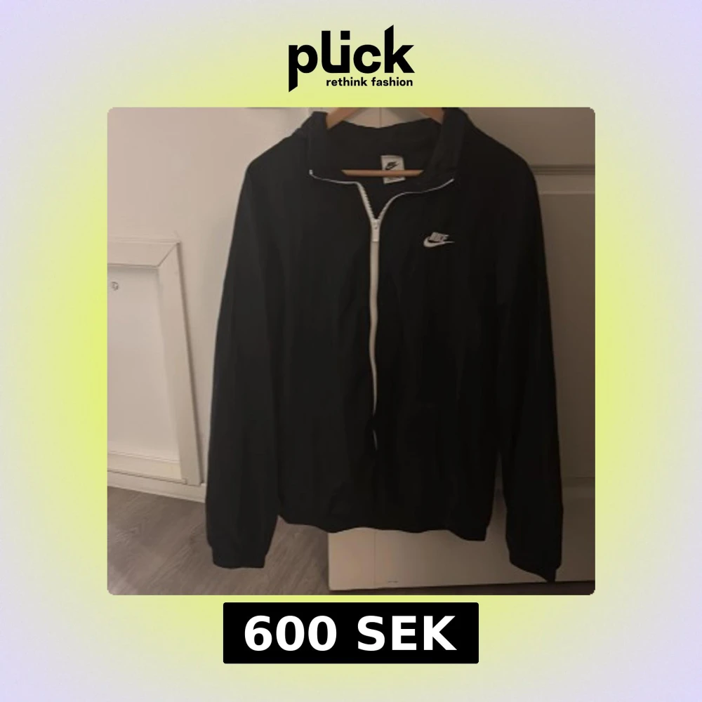 Hejsa!! Säljer en svart vindjacka från Nike med vit dragkedja och logga på bröstet. Jackan har huva och långa ärmar, perfekt för blåsiga dagar. Enkel och stilren design som passar till det mesta. Har inte tagit på mig så mycket. Priset kan diskuteras👍
