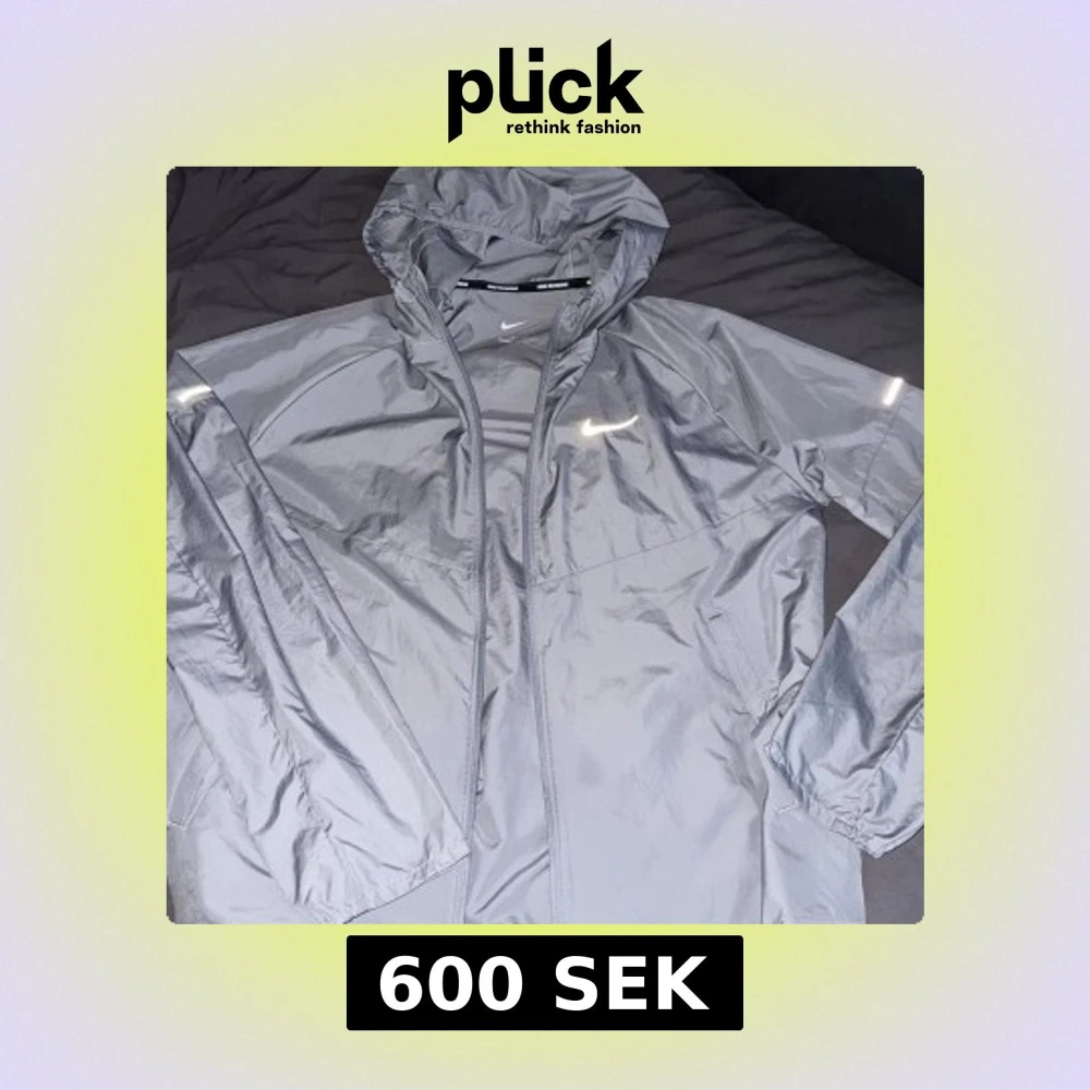 Skulle gärna kunna byta mot under armour jacka. Säljer en grå vindjacka från Nike Running med huva och dragkedja. Jackan har reflekterande detaljer och är perfekt. Lätt material och sportig design med Nike-logga på bröstet.