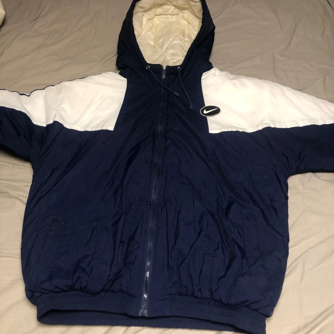 En fin vit blå Nike jacka i storlek L, pris kan diskuteras.