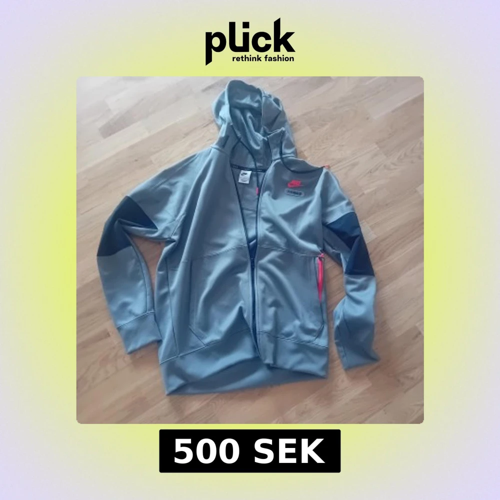 Nike Air Max vindjacka i grått med mörkare detaljer på ärmarna och rosa logga fram och bak. Jackan har huva, hel dragkedja och två fickor med rosa dragkedjor. Perfekt för dig som gillar sportig och clean stil.