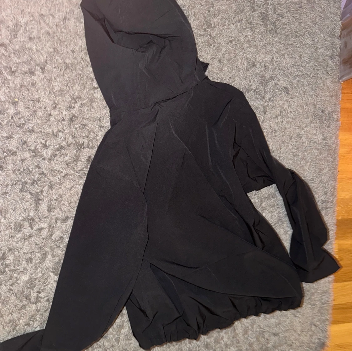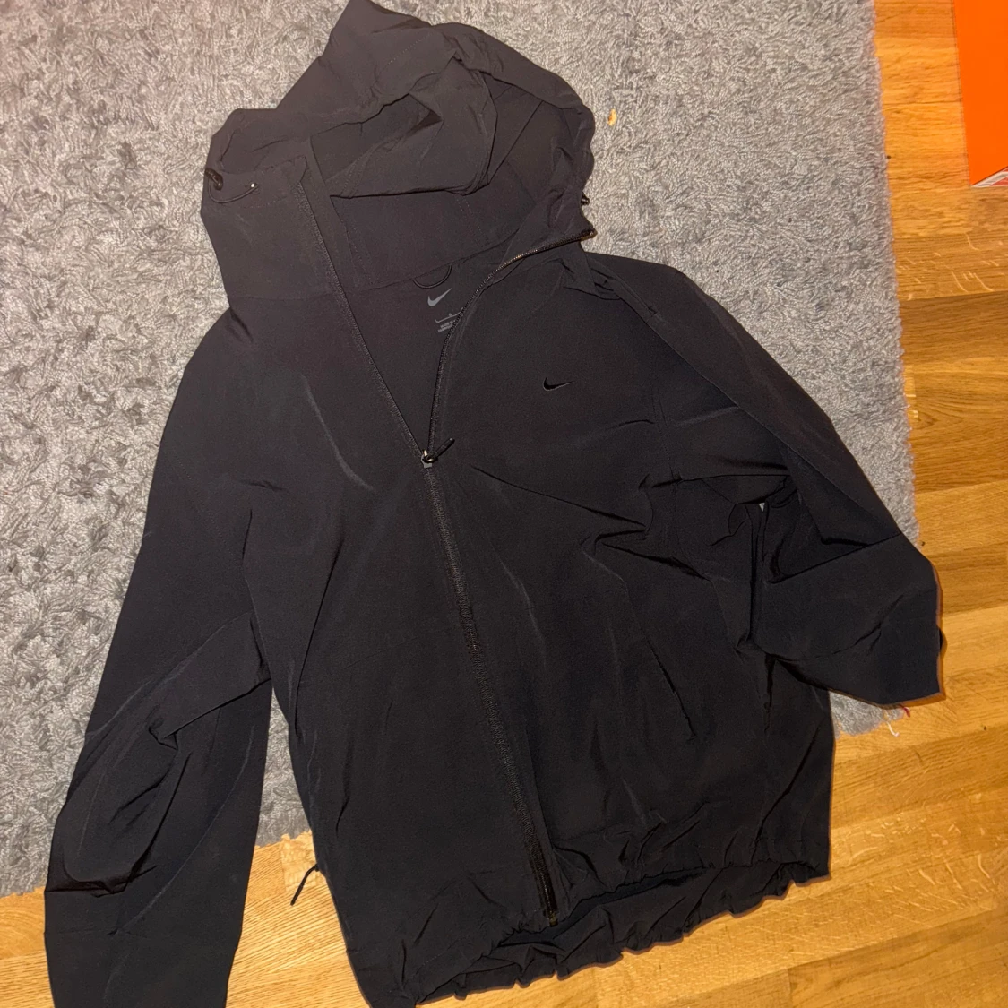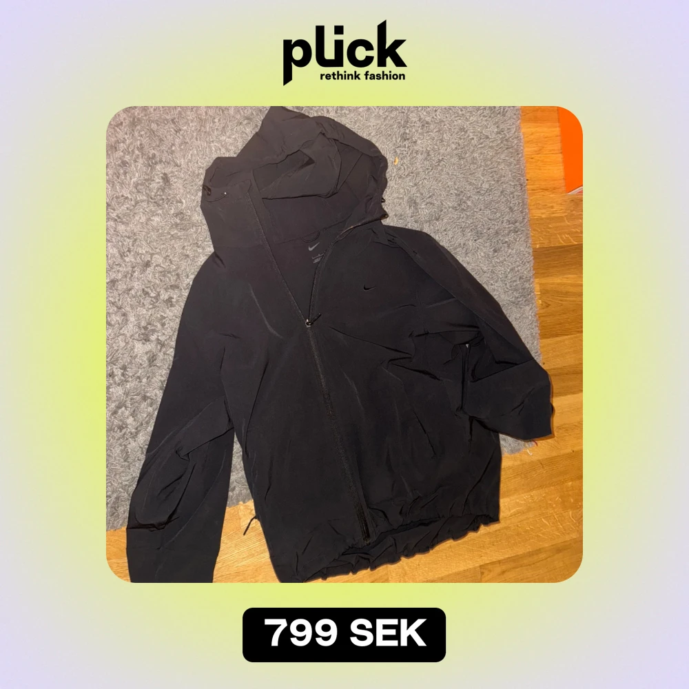 Säljer en svart vindjacka från Nike i mycket bra skick. Jackan har en dragkedja framtill och en praktisk huva. Perfekt för höst och vår när det blåser lite extra. Den är långärmad och har en stilren design som passar till det mesta. Perfekt för både träning och vardag! Köpt för 1299kr. Storlek L men passar M väldigt bra