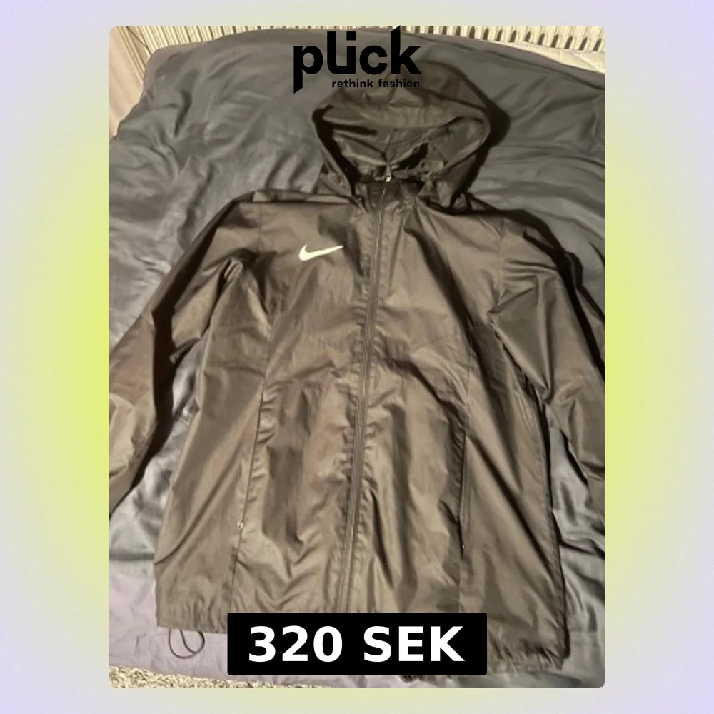 Svart vindjacka från Nike med Storm-Fit teknologi, perfekt för blåsiga och regniga dagar. Jackan har huva, hel dragkedja framtill och två sidofickor. Swoosh-logga på bröstet och justerbar nederkant med snörning. Lätt och sportig design.