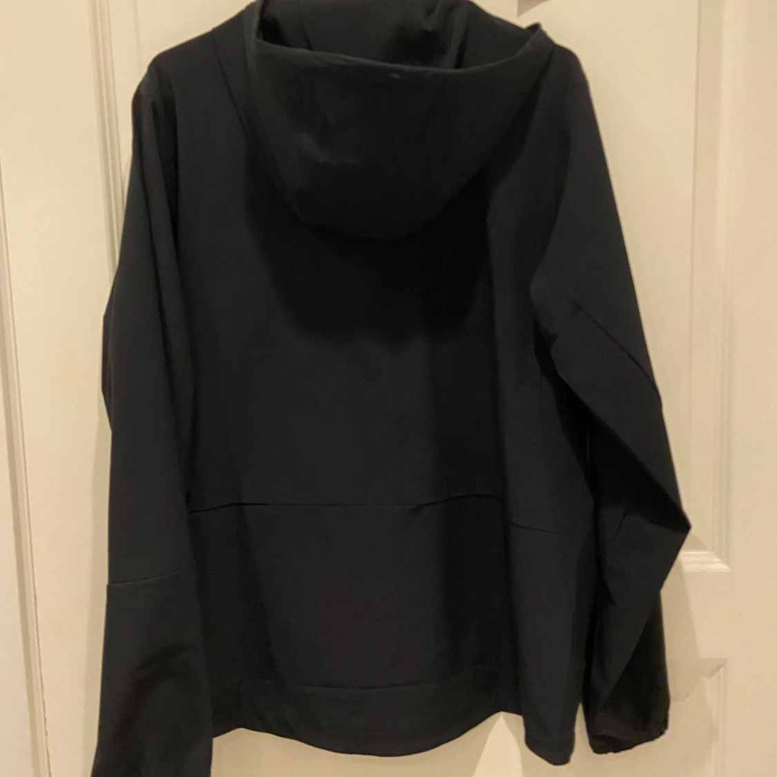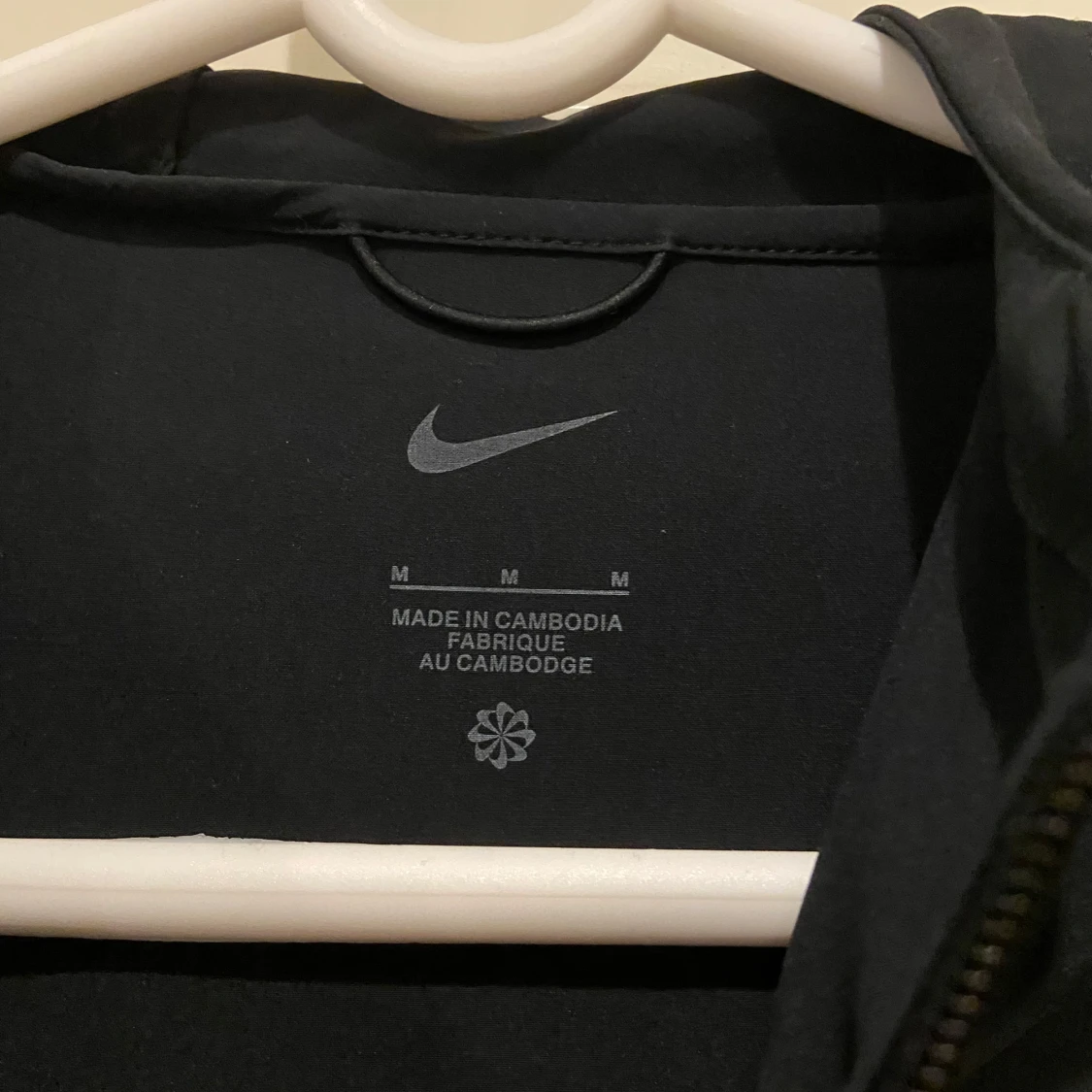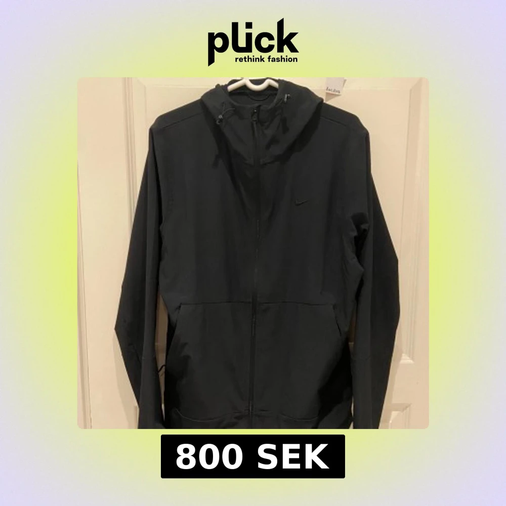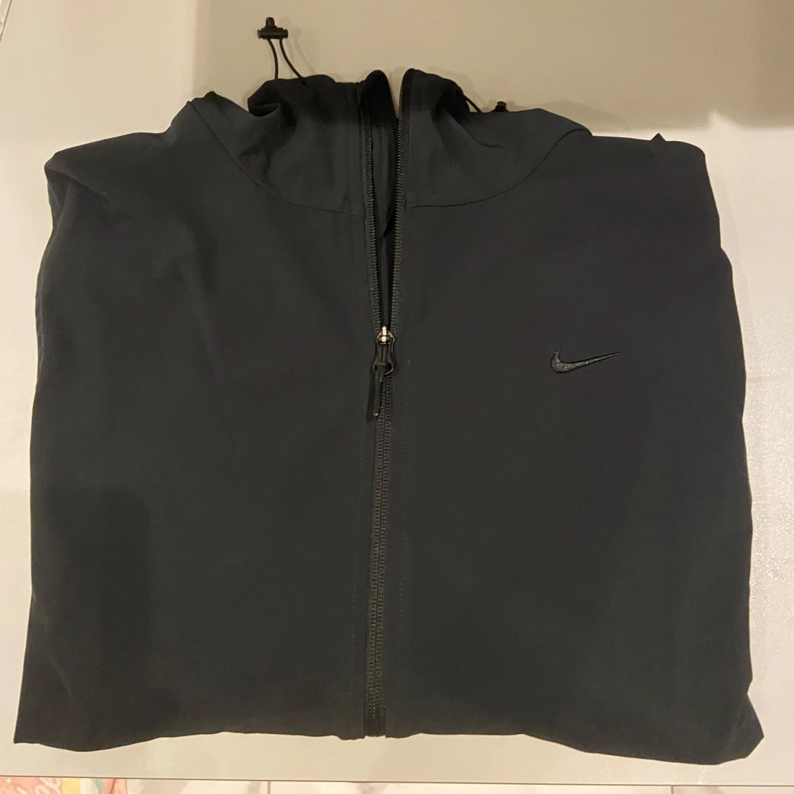 Svart vindjacka från Nike med minimalistisk design, hel dragkedja framtill och justerbar huva med snörning. Jackan har diskret Nike-logga på bröstet och två sidofickor. Perfekt för blåsiga dagar och enkel att packa ner i väskan.