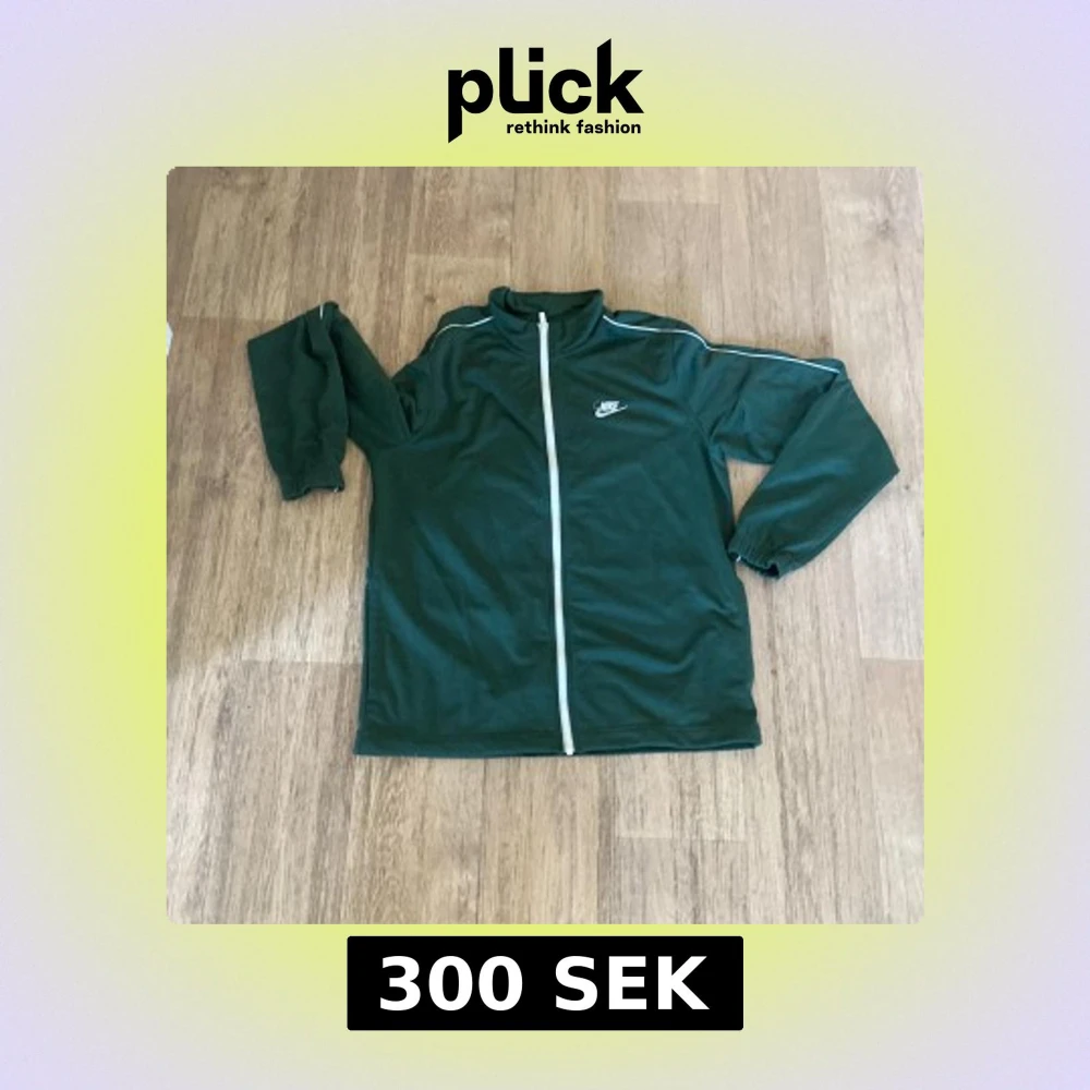 Mörkgrön träningsjacka från Nike med vit dragkedja och vit logga på bröstet. Jackan har hög krage, långa ärmar och vita detaljer längs axlarna. Perfekt för sportiga tillfällen eller som en snygg streetwear-detalj.