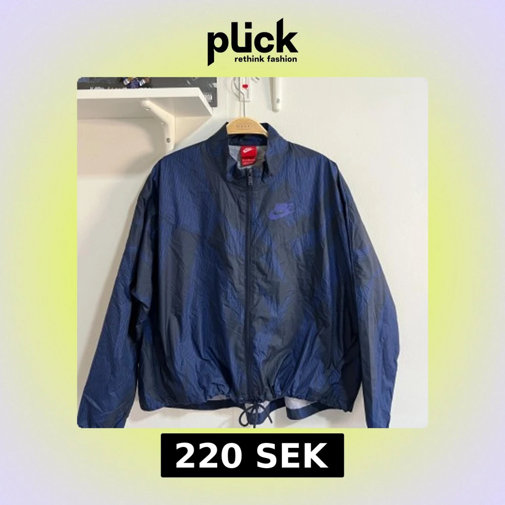 Säljer en Vintage Nike windbreaker i stilren svart färg med mörkblått mönster i storlek M. Perfekt för vår, sommar och höst – lätt, vindtät och med justerbar passform tack vare snörning i nederkant! ✔ Märke: Nike ✔ Färg: Svart med mörkblått mönster – stilren och lätt att matcha ✔ Storlek: M (passar även S för oversized look) ✔ Material: Nylon/polyester – vindtätt och lättvikt ✔ Passform: Regular fit, kan justeras för mer slim eller relaxed look ✔ Skick: A (Utmärkt skick, inga skador eller fläck
