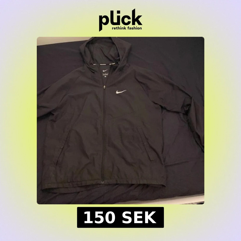 Säljer en svart vindjacka från Nike med huva och dragkedja. Jackan har långa ärmar och två fickor framtill. Perfekt för löpning och andra utomhusaktiviteter. Hör av er vid minsta lilla fundering 🙌😉