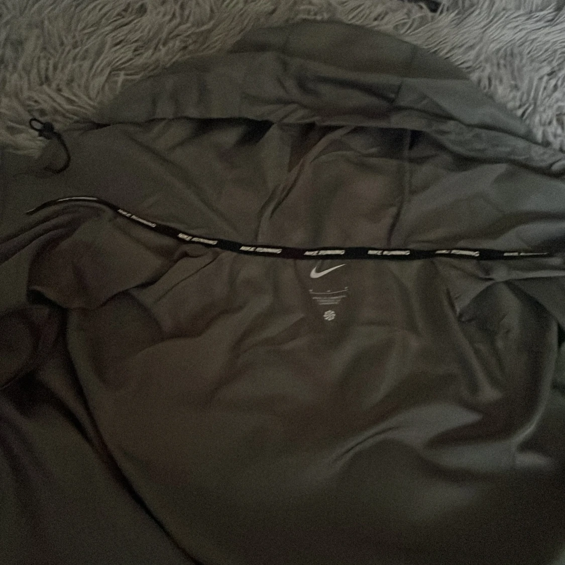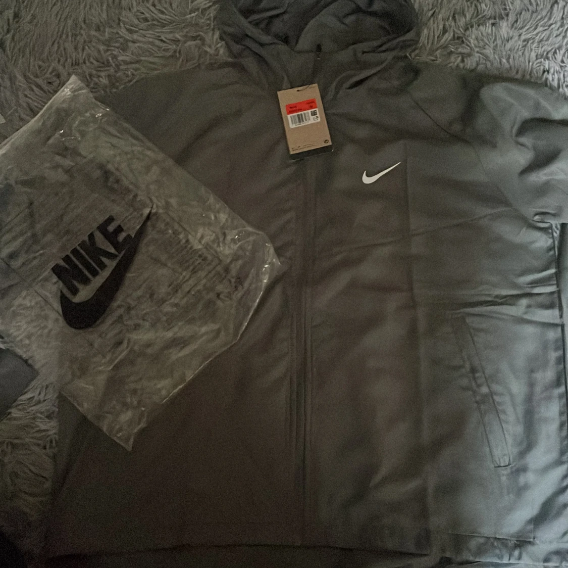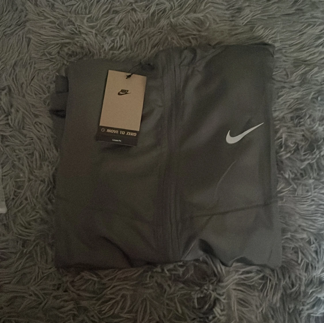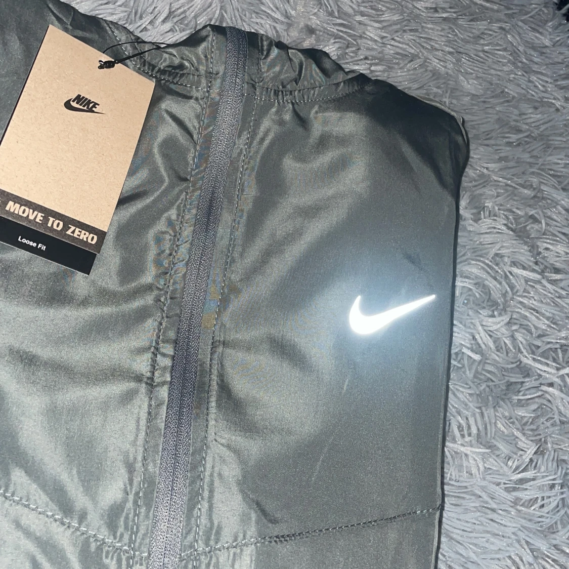 Snygg grå vindjacka från Nike med vit logga på bröstet. Jackan har huva, dragkedja framtill och två sidofickor. Materialet är lätt och känns sportigt, perfekt för dig som gillar streetwear. Loose fit för en avslappnad vibe.